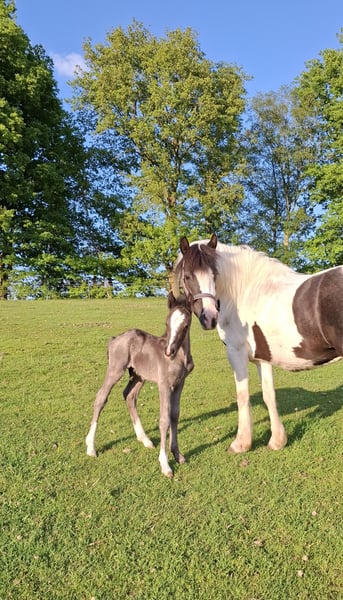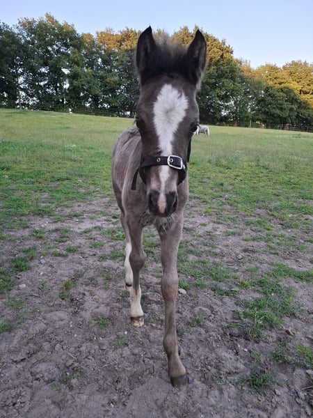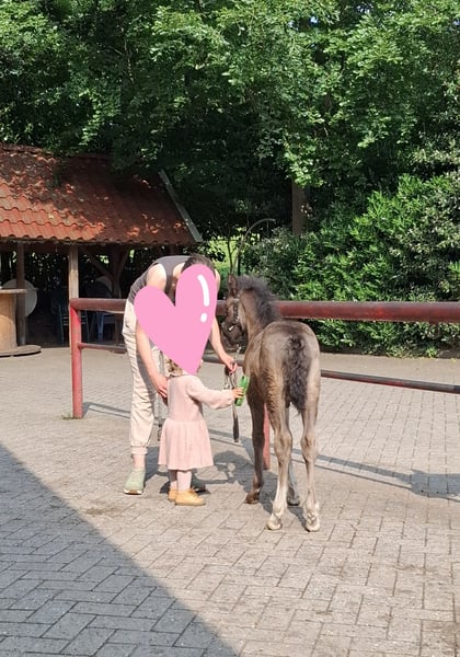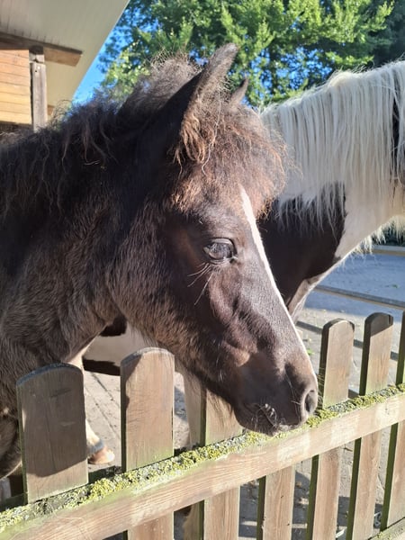 Ich bin Mogli, bin am 7.5.25 geboren und suche nach dem Absetzen (ab Herbst) ein neues Zuhause. Ich bin ein super neugieriger, mutiger kleiner Kerl. Anhänger fahren, Anbinden und putzen, sich überall anfassen und führen lassen sind garkein Problem für mich. Ich bin wirklich ne coole Socke. Meine Mama ist eine ca. 1,25m große, kompakte Ponystute und mein Papa ist ca. 10cm größer. Da ich jetzt schon so lange Beine habe vermuten alle das ich locker Papa's Größe erreiche. Ich bin sehr hell geboren aber jetzt richtig schön schwarz geworden. Falls du mehr über mich erfahren möchtest melde dich gerne. Shetty Hengst Odin, Mogli's bester Freund sucht ebenfalls sein neues Zuhause. Odin ist 2024 geboren, und für sein Alter absolut artig und lieb. Er kennt Kinder und alles was dazu gehört. Er zeigt keinerlei Hengstmanieren. Seine Eltern sind 90cm und 1,10m. Dieses Maß wird er auch bekommen. Ich denke er könnte ein tolles Kinder oder Kutschpony werden.
