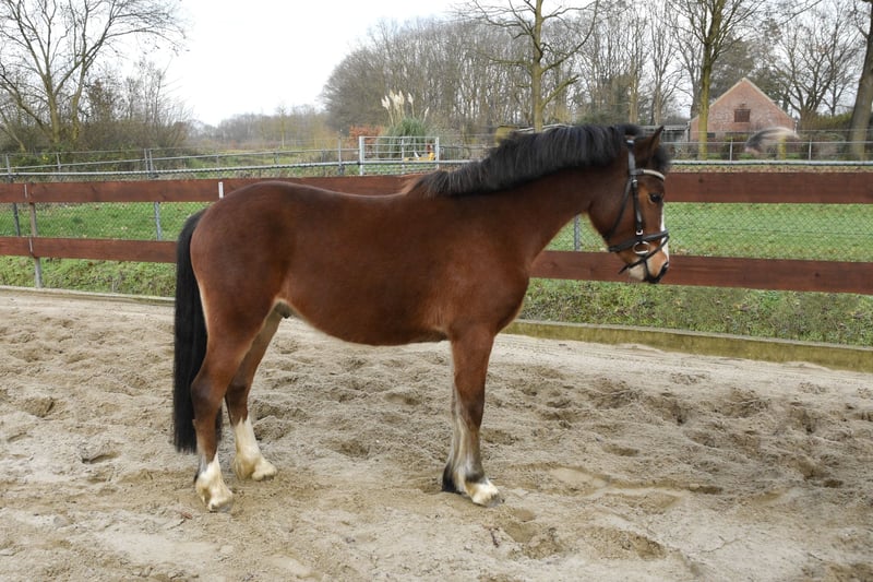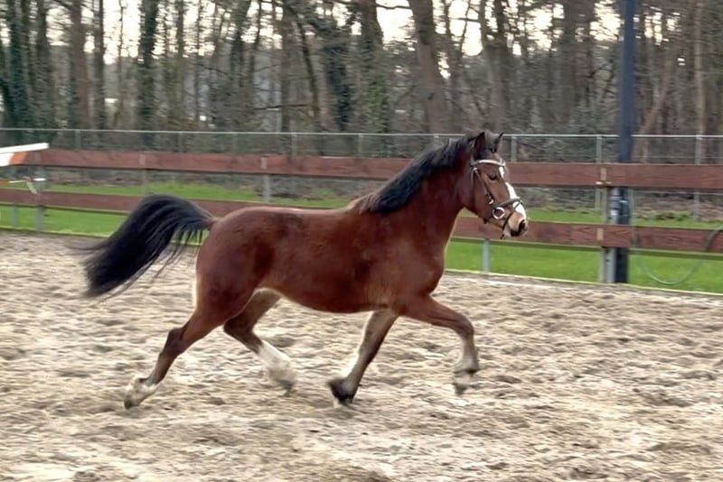 Nieuw huisje gezocht! Super brave pony! Ontzettend lieve en super brave 3 jarige C-pony Welsh ruin. Hij meet 1.30m en zal naar verwachting uitgroeien rond de 1.34m, gezien zijn leeftijd en hij nog wat overbouwd is. Zijn afstamming is: Willow Constantine x New Challenge’s Braveheart x Ridgehill Rhydian. Hij heeft hele goede gangen! Op de foto’s en filmpje lieten we hem voor de aller eerste keer los springen. Hij deed dit ontzettend goed en vond het ook leuk om te doen en toonde hierbij een hele goede achterhand. Ondanks zijn jonge leeftijd is hij echt super braaf! Hij heeft al wel een paar keer een stapritje aan de hand gedaan met een klein kindje op zijn rug, maar is verder nog onbeleerd. Hij kent dus wel al een zadeltje. Hij is heel makkelijk in de omgang, staat netjes stil tijdens het poetsen, kent het halster op en af doen, een dekentje en loopt dus ook braaf mee aan een touwtje. Hij komt meteen naar je toe in de wei en is ook heel sociaal naar andere paarden. Hij is ook braaf op de trailer! Hij heeft geen (stal)gebreken! Leuke kans voor iemand die een toekomstige sport- en kinderpony zoekt! Ook interessant voor de wagen in de mensport! Vaste prijs € 2250