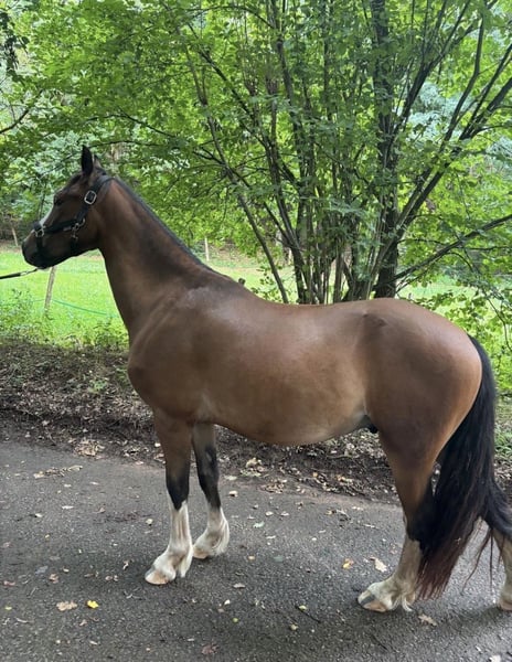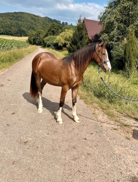 Ganz schweren Herzens suche ich für meinen Welsh C Wallach Rio ein neues, liebevolles Zuhause. Eckdaten: • Name: Rio • Geboren: 14.05.2022 • Rasse: Welsh C mit Abstammungsnachweis & Stammbaum • Stockmaß: aktuell ca. 1,38 m (im Wachstum) • Geschlecht: Wallach • Standort: Mittelbrunn (Kreis Kaiserslautern ) Ausbildung & Können: Rio ist altersentsprechend sehr gut vorbereitet: • kennt Bodenarbeit & Longieren • geht alleine ins Gelände und in den Wald spazieren • liebt es, von Kindern geputzt und betütelt zu werden • kennt bereits Sattel & leichtes Kinder-Reitergewicht ➡️ Wird jedoch als roh verkauft, sodass sein weiterer Weg individuell gestaltet werden kann. Charakter: Rio ist ein aufgeschlossenes, menschenbezogenes Pony, das gerne Neues lernt. Er zeigt sich unerschrocken gegenüber Traktoren, lauten Geräuschen und anderen Tieren. Gesundheit: • regelmäßig entwurmt & geimpft • barhuf, Hufbearbeitung gewohnt • osteopathisch vorgestellt • tierärztlich kontrolliert Hinweis: Rio ist auf der Hinterhand leichtgradig durchtrittig. Dies bereitet ihm aktuell keinerlei Probleme. Laut Tierarzt ist ein Beritt möglich – Näheres dazu gerne im persönlichen Gespräch. Sonstiges: Rio wünscht sich einen Platz, an dem er weiterhin gefördert, geliebt und beschäftigt wird. Ein persönliches Kennenlernen ist ausdrücklich erwünscht! Nähere Infos und Fragen gerne per Nachricht. Equipment( zum Teil neu) kann günstig dazu erworben werden.