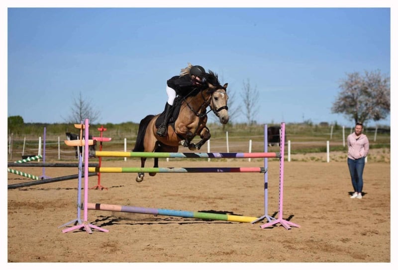 140 cm wzrostu 7 lat. maść jelenia. rasa - kuc wierzchowy bardzo pracowity kuc, uwielbi skakać , jest bardzo waleczny, gdy nie pasuje odskok on i tak zawsze podejmie skok i dodatkowo nie lubi dotykać drągów co jest bardzo dużym atutem tego kuca. Regularnie startujący w zawodach ogólnopolskich w grupie C. Starty również na wysokościach 100 cm nie sprawiają mu problemu. Jego pierwsze poważne zawody Halowy Puchar Polski 2025 ukończył na 10 miejscu. Zdrowy, Łapiący za oko. Peleryny pod czas jazdy i inne pomysły dziecka nie sprawiają mu problemów. Łatwy w załadunku i transporcie. Bardzo grzeczny w obejściu. Dziecko robi przy nim wszystko samo . Ma bardzo dobrą głowę , konie wokół niego mogą szaleć na placu a on i tak spokojnie podąża z dzieckiem dalej.