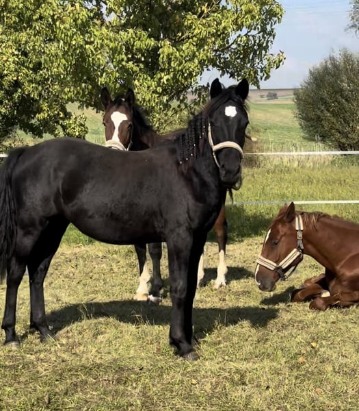 Verkaufe Welsh-D Stute – Freizeitpartner gesucht! Zum Verkauf steht eine wunderschöne, junge Rappstute vom Welsh-D. Geboren im August/ 2024, ist sie bereits jetzt eine beeindruckende Erscheinung mit einem Stockmaß von ca. 130 cm. (Wird mal so 1,50-1,55 groß . )Die Stute ist bestens geeignet für den Freizeitbereich und überzeugt durch ihr freundliches Wesen und ihre Lernbereitschaft. Hat einen grünen pass ohne Abstammung. Vater war ein knapstruper Ideal für Reiter, die ein zuverlässiges und charmantes Pferd für die Freizeit suchen. Sie ist gesund, regelmäßig geimpft und gut gepflegt. Bei Interesse oder für weitere Informationen stehe ich gerne zur Verfügung. Ein Kennenlernen ist nach Absprache jederzeit möglich!