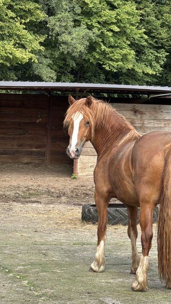 Filigri is a typey Welsh Cob young mare, she is not only docile, but also really pretty. She lives together with her mother and her big sister in our mixed mare herd and is characterized by cheerfulness, friendliness and a very pleasant nature and temperament. Although she is still growing, her movements are tactful, lively and light-footed. She is very sure-footed, just like her successful parents and siblings. Filigri is uncomplicated, has never been visibly ill and has been regularly wormed and vaccinated. An all-round great partner to experience a wonderful time together. We would wish her a friendly, harmonious new home.