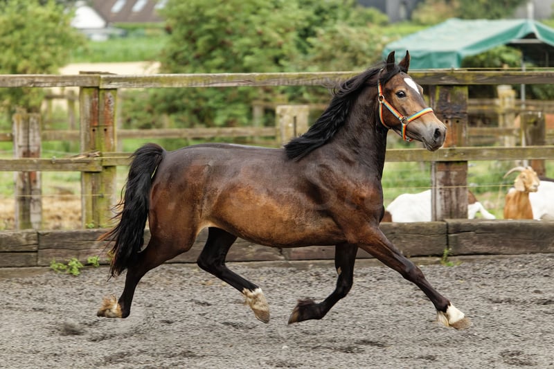 Doreena is a people-oriented, cuddly, lovable, very pretty young Welsh Cob mare with exceptionally good movements and a lovely character. After appropriate training, she promises to become a pony for many different types of equestrian sport or for breeding.