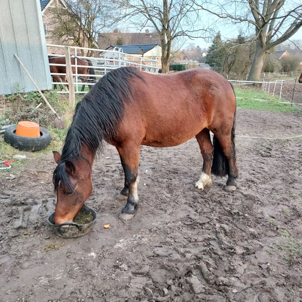 Travenas Samira Now 5 years old She has not been ridden yet. For self-education, Samira already holds the Verband Premium award. This year, she foaled a premium-rated filly. In the video, she was 3 years old when she received the Verband Premium. Last chance to acquire a wonderful pony at a low price. Afterward, she will be trained, and the price will increase. She has a calm temperament, and I could also see her as a driving pony. Her half-brother, Travenas Takoda Secret, is licensed and passed his driving performance test with a score of 9.39.