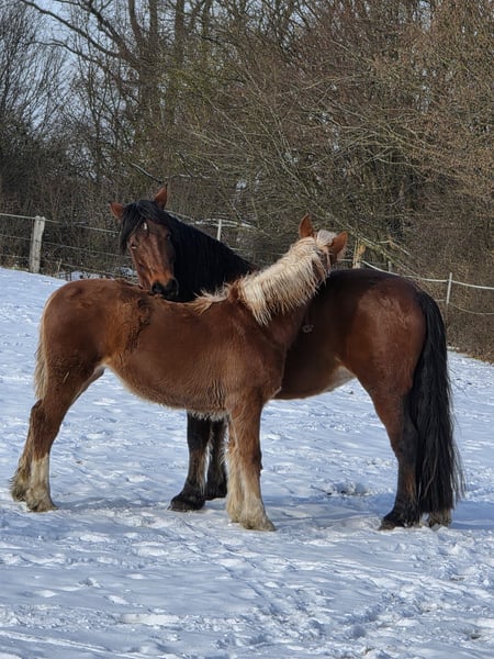 Travenas Samira 4 anni Non è ancora stata montata. Per l'autocostruzione: Samira ha già ottenuto il premio di Verband. Quest'anno ha partorito una puledra che è stata premiata. Nel video aveva 3 anni, quando ha ricevuto il premio di Verband. È di carattere tranquillo e potrei immaginarla anche come pony da tiro. Suo fratello, Travenas Takoda Secret, è stallone approvato e ha superato la prova di prestazione in dressage con un punteggio di 9,39.