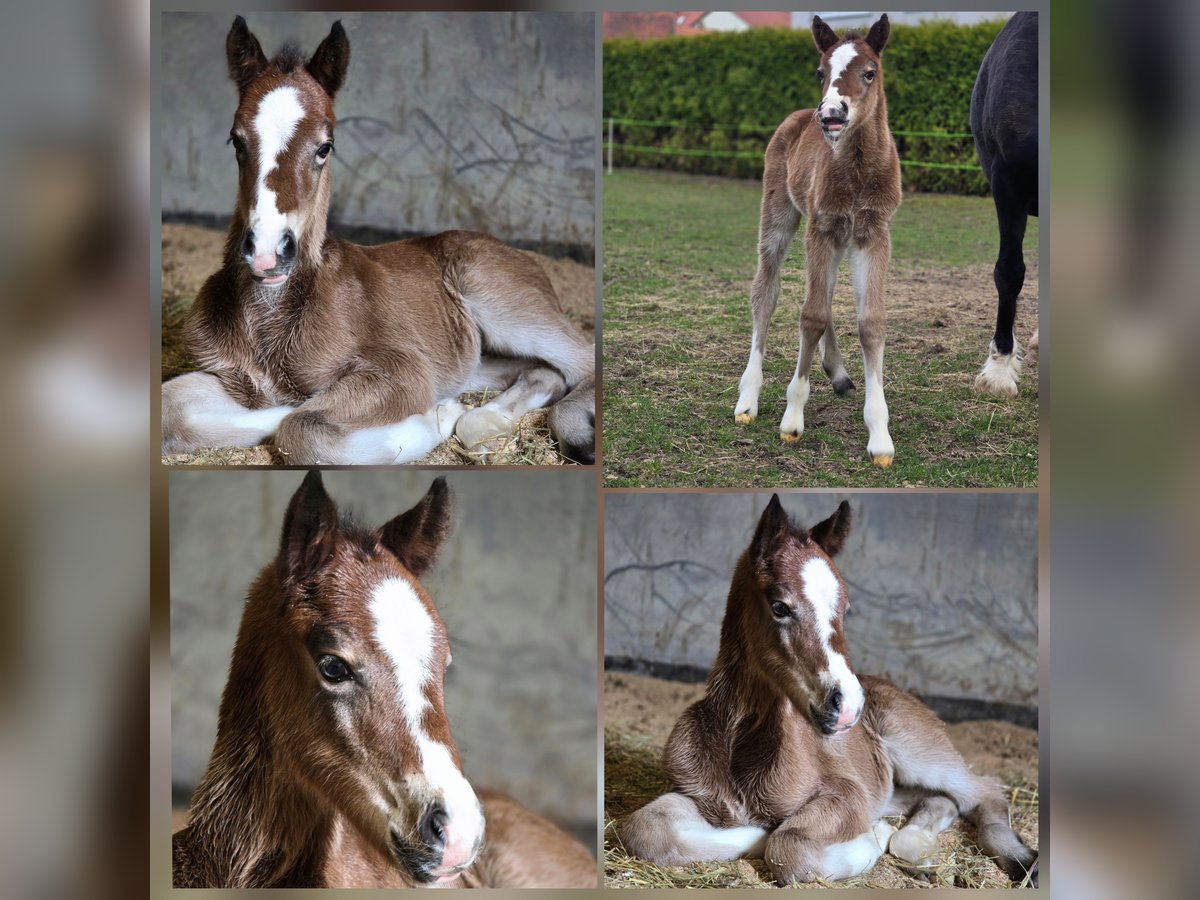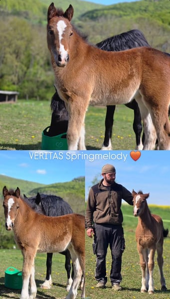 Veritas Springmelody 11.03.2026 Crumpwell Springsong 1,47 × Cornwall Optimus Prime 1,49 MV: COEDNEWYDD Eldorado Zum Verkauf steht ein typvolles, gesundes Welsh Cob Fohlen mit guter Abstammung. Es überzeugt durch sein tolles Erscheinungsbild, freundlichen Charakter und seine neugierige, ausgeglichene Art. Das Fohlen wächst artgerecht in der Herde auf, ist gut sozialisiert und kennt den täglichen Umgang mit Menschen. Es zeigt bereits schöne, schwungvolle Bewegungen – ideal für Freizeit, Sport oder Zucht. Bis zur Abgabe wird regelmäßig entwurmt und das Fohlen ABC geübt. Kann zur weiteren Aufzucht bei uns bleiben Bei Kaufzusage ist eine Anzahlung zu leisten, der Restbetrag ist spätestens zum Absetzen fällig. Bei Interesse freuen wir uns über Ihre Nachricht!