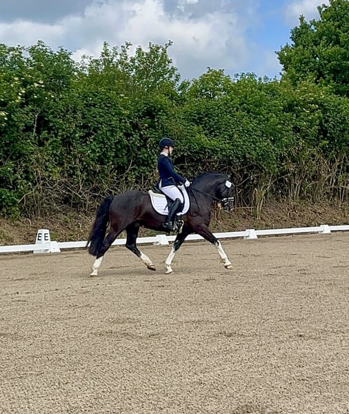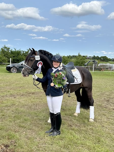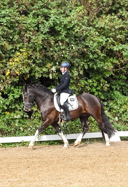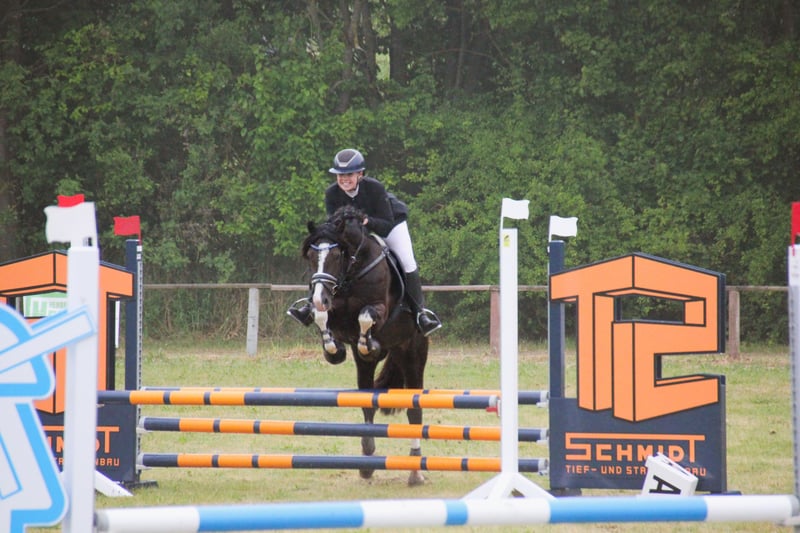 Möhlenbeeks Bandit ist ein 9-jähriger, gekörter Welsh Cob (Sektion D) Hengst mit einem Stockmaß von 1.44m. Er vereint sportliches Potenzial, Leistungsbereitschaft und einen außergewöhnlichen Charakter. Gibt es etwas was Bandit nicht kann? Offensichtlich nicht. Egal ob Dressur, Springen, Gelände oder Zucht – Bandit lernt schnell, ist immer bereit für neue Aufgaben und möchte seinem Menschen gefallen. Bandit besticht nicht nur durch sein aussehen sondern auch durch seinen tollen und absolut nicht hengstigen Charakter, eine tolle Arbeitseinstellung und klare, bequeme Grundgangarten. (Ist auch von Kindern zu händeln und zu reiten!) Im Springen zeigt er einen gewaltigen Sprung, ist mutig und will immer auf die andere Seite – Unterbauten und Wassergräben beeindrucken ihn nicht. Auch auf der Geländestrecke zeigt er sich mutig und verlässlich, überbaute Gräben und durchs Wasser Galoppieren stören ihn ebenfalls nicht. Alleine oder in der Gruppe ausreiten, Baden gehen, ohne Sattel und nur mit Halfter und Strick reiten, alles kein Problem für ihn. Bandit steht Nachts in seiner Box und Tagsüber auf seinem Paddock. Andere Hengste, Wallache oder auch Stuten stören ihn sowohl in der Box als auch auf dem Paddock nicht als Nachbarn. Außerdem ist er Verladefromm, schmiedefromm, regelmäßig entwurmt und geimpft. (Zucht)erfolge: • Gekört am 08.02.2020 in Neumünster • Absolvierung der 30-Tage-Stationsprüfung (Zuchtrichtung Reiten) vom 08.08.–09.09.2021 • 5. Platz gesamt Wertung, 2. Platz bei den Welsh Ponys bei der FN-Bundeshengstschau für Sportponys in Berlin am 20.01.2023 Bandit ist Siegreich bis zur Klasse L in der Dressur und im Springen konnte er Erfolge bis zur Klasse A feiern. Die ersten Geländeprüfungen der Klasse E hat Bandit souverän gemeistert und wurde erste Reserve. Außerdem gab es für uns Bronze in der Kreismeisterschaft für Ostholstein in der Dressur für LK5 und LK6 der Vielseitigkeit. Im Springen ist das Potenzial über die Klasse A hinaus vorhanden und die Lektionen über die Klasse L hinaus werden weiter gefestigt. Preis ändert sich bei weiter Ausbildung und Erfolgen. Es ist uns wichtig das Bandit nicht nur sportlich gefördert und gefordert wird sondern in seinem neuen zu Hause dein bester Freund wird. Bandit wird im Auftrag Verkauf. Er ist noch im Besitz seines Züchters und wurde mir für seine Ausbildung zur Verfügung gestellt. Bei ernsthaften Interesse freuen wir uns über eine Nachricht oder einen Anruf – Videos & weitere Infos gerne auf Anfrage.