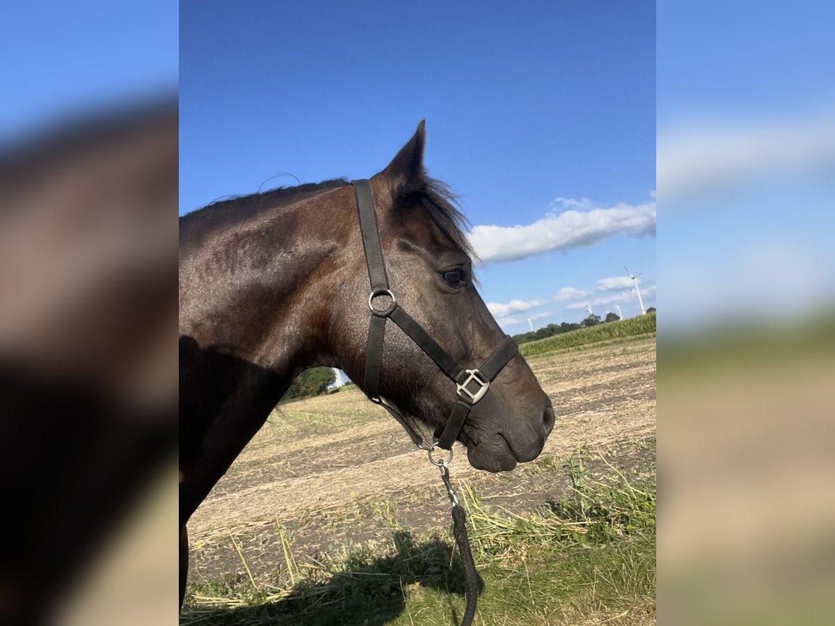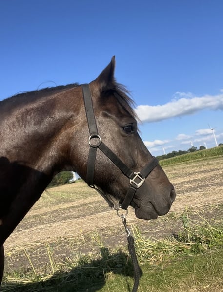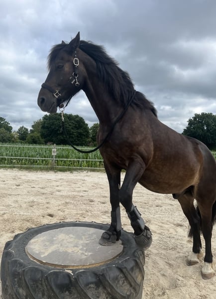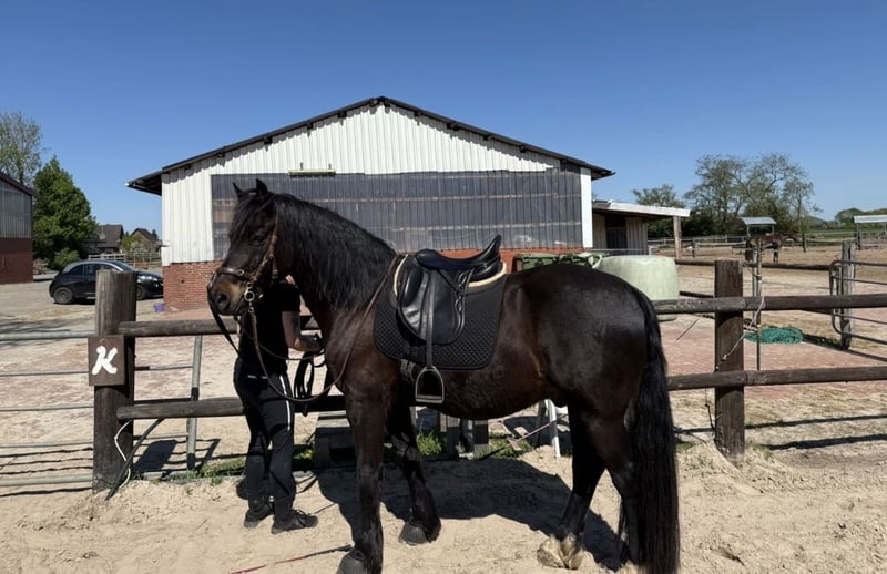 Manchmal passt es trotz aller Bemühungen einfach nicht zu 100 %. Deshalb suche ich für meinen Wallach ein neues, passendes Zuhause. Er ist ein dunkelbrauner Welsh Cob aus 2016, wird im Mai 10 Jahre alt und ist ca. 1,52 m groß. Er ist seit fast zwei Jahren in meinem Besitz. Vorgeschichte & Ausbildungsstand: Im Vorbesitz wurde er erst mit ca. 7 Jahren gelegt. Davor war er Deckhengst und lebte 24/7 in der Hengstaufzucht. Er war noch roh als ich ihn übernommen habe. Die Ausbildung begann daher erst spät, im Alter von 8 Jahren, musste jedoch aufgrund eines Fesselträgerschadens (vorne rechts) unterbrochen werden. Er ist in Schritt und Trab geritten. Der Galopp ist alters- und aufbaubedingt noch nicht ausreichend kräftig und ausbalanciert. Auf geraden Strecken im Gelände hat der Galopp (vor dem Fesselträgerschaden) bereits gut funktioniert. Er geht nur in der Gruppe und noch nicht sicher ins Gelände. Gesundheit & aktueller Stand: * ausgeheilter Fesselträgerschaden (aktueller Kontrollultraschall ist absolut unauffällig). Laut Tierarzt belastbar wie ein gesundes Pferd (weicher Boden und Wendungen sollten derzeit jedoch noch eher vermieden werden) * Aktuell im Schritt und Trab geritten * Im Trab noch eine leichte Taktunreinheit, tierärztlich abgeklärt (evtl durch Schonhaltung verursacht) * Beim Antraben gelegentlich 1–2 Huster, tierärztlich abgeklärt → Empfehlung: Heu bedampfen oder wässern, Inhalieren * Geimpft und die Zähne werden jährlich gemacht * Vorne beschlagen Charakter, Haltung & Anforderungen: Er ist grundsätzlich ein liebes, sehr menschenbezogenes Pferd, das gerne gefallen möchte, dabei aber auch seinen eigenen Standpunkt hat. Er ist eher schreckhaft und braucht Zeit, um sich auf neue Situationen einzulassen. Besonders nach einem Stallwechsel sollte ihm diese Zeit unbedingt gegeben werden. Aufgrund seiner Vorgeschichte wurde eine gemischte Herde bisher nicht ausprobiert. In einer reinen Wallachherde ist er problemlos integriert. Bei mir zeigt er sich rangmittig. Er mag es überhaupt nicht, in der Box gehalten zu werden und steht somit bei mir im Offenstall. Er ist nicht für Anfänger oder Kinder geeignet. Gesucht wird ein erfahrener, ruhiger und souveräner Mensch, der ihm Sicherheit gibt und Freude daran hat, ihn geduldig weiter aufzubauen und auszubilden. Er wird ausschließlich als Freizeitpferd abgegeben. Auch für Menschen, bei denen Reiten nicht im Mittelpunkt steht, wäre er ein guter Partner. Es handelt sich nicht um einen Notverkauf! Es gilt Platz vor Preis. Weitere Informationen gerne im persönlichen Gespräch. Es werden nur Anfragen mit Namen, Beschreibung und Vorhaben beantwortet.