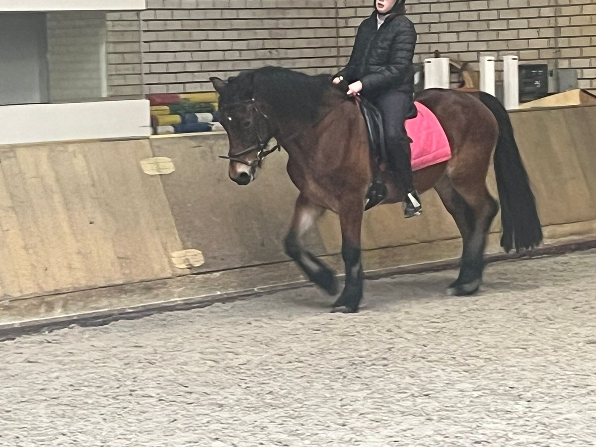 d pony te koop 12 jaar. Welsh cob. 1.47m .een ruin. Niet geschikt voor jonge onervaren ruiter/amazone. Die gaat hij uitproberen. Maar ben je wat ervaren is er niets aan de hand. Laatste jaar niet veel gereden. Maar het is opstappen en rijden, ook buiten. Hij is makkelijk te laden op de trailer. Houd ook van een sprongetje. Braaf bij de hoefsmid. In het verleden beslagen, maar nu al lang niet meer. Heeft sterke hoeven. In het verleden ook voor de kar gereden.