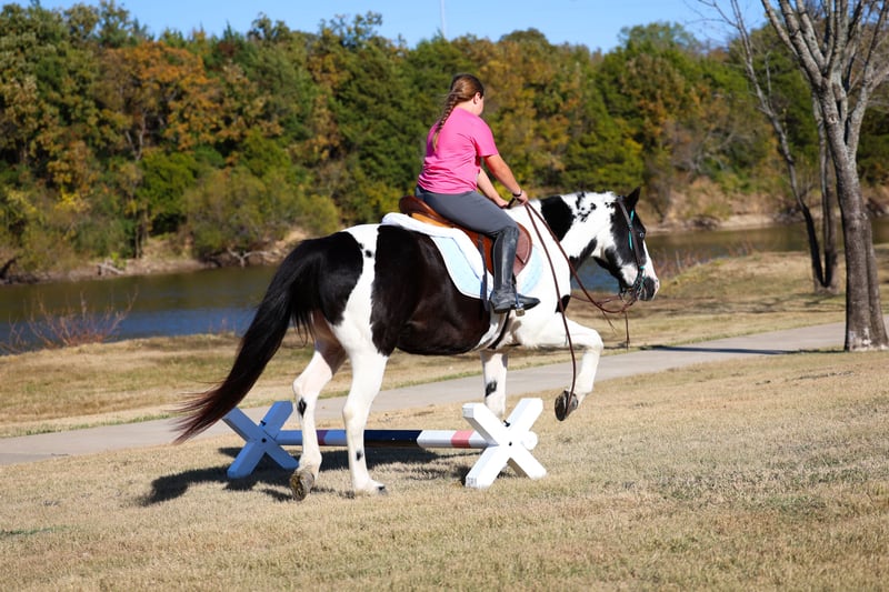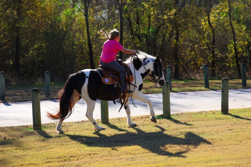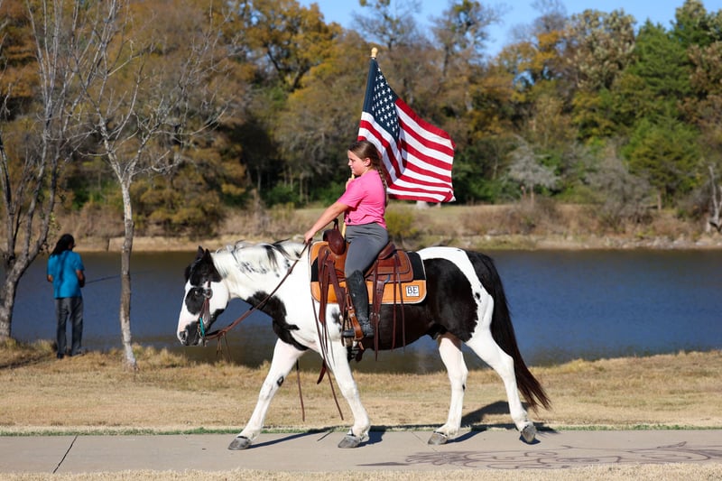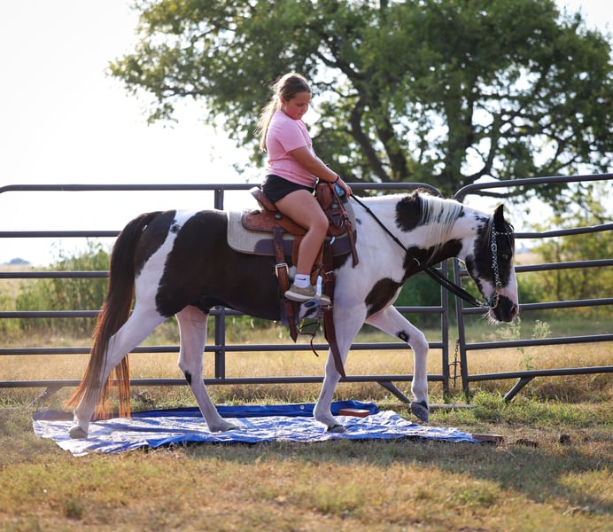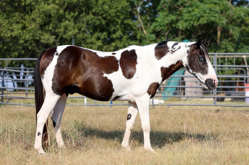 🎁 𝐈𝐍 𝐓𝐈𝐌𝐄 𝐅𝐎𝐑 𝑪𝒉𝒓𝒊𝒔𝒕𝒎𝒂𝒔 🎁 Happening now thru TUESDAY | DECEMBER 9th - Available EXCLUSIVELY on Ponybid's website! For more details and to register visit: www.Ponybid.com CONSIGNOR CONTACT: MM Ranch 469-595-6289 LOCATION: Forney, TX BREED: Welsh Pony REGISTERED: No REGISTERED NAME: Domino COLOR: Paint HEIGHT: 13.2 AGE: 16 GENDER: Gelding Where do I even start with a great BABYSITTING UNICORN gelding like this one! Domino is the perfect little fun size horse standing 13.2 hands tall. He has been part of our family for a long time now and has babysat so many kids, we are saddened by this decision but it is time to part with him. Domino is 16 year old very cute black and white gelding. He has manners and rides around like a big horse, he’s as broke as broke gets and I would trust him with any kid, small adult, grandma/grandpa or any age beginner. Doesn’t matter…You can ride him. I trust anyone can ride him anywhere, including BRIDLE-LESS! Absolutely NO kick or buck in him! Absolutely no bad habits! Absolutely no maintenance or bs. He is simple, easy, and fun to ride. 🚙 He has been more miles and seen more country than most people! When I say he’s been there and done that I mean it. He is one handed broke, neck reins, and has a good stop! He has always been willing to go or do anything they have asked. He will ease thru the creeks/ponds, thickets, traffic safe, train safe, machinery safe, loud noises don’t bother him. He’s been to ropings, barrel races, jumping jumps, rodeos, spent many days working cows, dragging calves, hog hunting, swimming ponds, tied out camping, and been thru every aspect of the woods from thickets to boggy creeks, and trail riding down the roads. Trains honking and going by don’t bother him, he will ride right next to it. He even rides ENGLISH! We carry multiple buckets of feed strapped over his back to help carry to feed. Domino has also been used to carry the American flag for the National Anthem at rodeos. He is BOMBPROOF, absolutely no spook at all and will go anywhere he is pointed, he never refuses or says no. He is a once in a lifetime time little horse. ☀️ He is one of those that is as honest as the day is long. He’s easy to catch and hauls like a champ. He has the biggest heart and try of anything we have on the place. The kids themselves, saddle, bridle, and ride him everywhere with ZERO help from an adult. I trust this little horse enough for little kids to run up to him from the front or back and he will stand like a rock. 🎸 You can go rope on him, pop bull whips, run barrels, run poles, goats tie, TRICK RIDE, breakaway, and trail ride! Domino will walk, trot, lope, or go as fast as you want in all the events! He is the coolest little guy around and everywhere we go he gets ALL the attention. He leads, loads, ties, bathes, clips, and stands for the farrier. I really can’t say enough good things about him. Please don’t hesitate to call us about Domino, I’d love to talk to you about him.⚡️He sells 100% safe and sound in every way. Up to date on vaccines and coggins. 🌎 We can help with making shipping arrangements to anywhere!! 🎁🎄 He would be an ideal Christmas gift!!! We can hold him till Christmas to make for the perfect surprise!!!