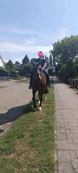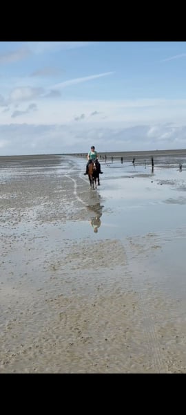 Zum Verkauf steht ein liebenswerter Welsh-D Wallach, geboren im Sommer 2005. Er überzeugt durch seine angenehme ehrliche und zuverlässige Art und seinen Charakter. Mit einem Stockmaß von 155 cm ist er perfekt geeignet für Reiter, die ein zuverlässiges und fein gerittenes unvertrauchtes Pferd suchen, das sich sowohl im Gelände als auch in der Bodenarbeit und beim Spazierengehen/Joggen wohlfühlt. -> er muss wieder Antrainiert werden, da er seit November steht. Wenn er Kontinuierlich bewegt wird, ist er im Gelände reitbar. Ebenfalls hat er Spaß an der Bodenarbeit und liebt es Kindern den Wald aus dem Sattel zu zeigen. Der Wallach ist freundlich im Umgang, und besitzt eine solide Grundausbildung. Er ist bei Kontinuierlicher Bewegung für Ausritte in allen GGA geeignet (Max 75 Kilo) Dank seines ausgeglichenen Temperaments ist er immer händelbar, braucht aber einen erfahrenen Reiter, wenn man alleine im Gelände Ausreiten gehen möchte. Dieses Pferd ist ein idealer Begleiter für alle, die Wert auf ein zuverlässiges Freizeitpferd legen, das mit viel Charme und Charakter überzeugt. Bei Interesse freuen wir uns auf Ihre Kontaktaufnahme, um weitere Details zu besprechen und einen Termin zur Besichtigung zu vereinbaren. _____ Er hat Spat, Arthrose und Equines Asthma - deswegen ist er seit Mai 2024 in Cuxhaven und ist dort Symptom- und Medikamenten-frei. Er hat seit November keine kontinuierliche Bewegung durch meine Reitbeteiligungen erhalten, daher habe ich ihn vor kurzem in Rente geschickt. Er müsste somit wieder Antrainiert werden, wenn man ausreiten gehen möchte. Er wird somit als Beisteller gegen Schutzgebühr mit Zubehör abgegeben.