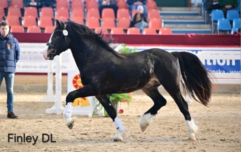 Finley DL *31-03-2021, 1,48 m hoog Fokproduct van de staatsprijshengst MBS Royal Flash, uit een moeder van H-S Hot Playboy Finley kreeg in de herfst van 2024 zijn positieve keuring, maar werd in het voorjaar van 2025 gecastreerd om later als rijpaard verkocht te worden. De ruin benadert nieuwe dingen met veel nieuwsgierigheid en lef, voltooit zonder problemen een rustparcours met allerlei spannende elementen en is uiterst mensgericht en knuffelbaar. Hij kent grondwerk, handwerk, longeerwerk, rijden vanaf de grond, dubbele longe, cavaletti- en stangenwerk aan de longe, wandelen, handpaard, vrijspringen en vrij rijden in stap en draf. Hij doet al deze dingen met motivatie en een fijne communicatie. De huidige eigenaren kochten Finley afgelopen zomer rechtstreeks van de fokker voor hun 12-jarige dochter vanwege zijn geweldige karakter. Helaas werd er in dit geval slecht geadviseerd, omdat een onbeleerd paard en een kind op RWB-niveau niet de beste combinatie vormen. Door de daaropvolgende training met veel stress en druk raakte Finley zodanig overbelast dat hij niemand meer opliet en paniek had voor zwepen en berijdershanden, evenals voor aanrakingen aan de achterhand. Dit maakte de situatie voor de familie nog moeilijker. Sinds herfst staat Finley bij ons voor een ‘nieuwe start’. We hebben hem heel voorzichtig en stapsgewijs opnieuw opgeleid, zijn angst voor ruiter, zwepen en aanrakingen weggenomen en nu is hij een paard dat door zijn vriendelijke aard en positieve werkhouding dagelijks blijft leren. Hij kan zonder grondpersoon opstappen, wacht geduldig tot je je hebt gesorteerd en loopt netjes in stap en draf. Ook longeerwerk met lange teugel en dubbele longe hebben we aangeleerd. Hij toont zich daarbij heel makkelijk en in de juiste handen zou hij zeker geschikt zijn als rij- en aanspanningspaard, bijvoorbeeld voor dressuur, springen, working equitation of trail. Finley kent zowel Engels- als westernuitrusting, omdat wij in beide disciplines opleiden en onze jonge paarden vanaf het begin verschillende uitrustingsstukken leren kennen. In de kudde is Finley eerder dominant, maar hij onderwerpt zich ook goed. Hij heeft hier gestaan met verschillende ruin en direct naast merries, maar nog niet in een gemengde kudde. Hij is momenteel hoefbevangen, braaf bij de hoefsmid, stapt netjes in de trailer en is verder heel makkelijk in alles. Op ons advies zoeken we nu een passend thuis voor Finley bij mensen met ervaring in jonge paarden, en voor de dochter een ervaren leerschaap. Finley wordt uitsluitend verkocht aan passende mensen en een diervriendelijke huisvesting. Hier staat absoluut de mens en het welzijn van het paard voorop, prijs is ondergeschikt. Het is voor de familie zeer belangrijk dat hij het in de toekomst goed zal hebben. Een hoefonderzoek (AKU) met willekeurig omvang kan door geïnteresseerden op verzoek worden aangevraagd. Indien gewenst, kan hij ter verdere opleiding ook bij ons blijven.