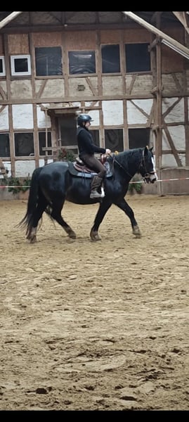 Finley DL *31.03.2021 Stm. 1,48m v. Bundesprämienhengst MBS Royal Flash aus einer Mutter von H-S Hot Playboy Finley erhielt im Herbst 2024 sein positives Körurteil ehe er im Frühjahr 2025 dann allerdings kastriert um später als Reitpferd verkauft zu werden. Der Wallach begegnet neuen Dingen mit viel Neugier und Mut, bewältigt ohne Probleme einen Gelassenheitsparcours mit lauter gruseligen Dingen und ist extrem Menschenbezogen und verschmust. Er kennt Bodenarbeit, Handarbeit, Langzügelarbeit, Fahren vom Boden, Doppellonge, Stangen- & Cavalettiarbeit an der Longe, Spazieren gehen, Handpferd, Freispringen sowie freies Reiten in Schritt und Trab und meistert all das motiviert und fein in der Kommunikation. Die jetzigen Besitzer kauften Finley vergangenen Sommer direkt vom Züchter für deren 12J. Tochter aufgrund seines tollen Charakters. Leider wurden sie hier in sofern schlecht beraten, dass ein rohes Pferd und Kind auf RWB Niveau nicht die beste Konstellation darstellen. Durch den dann folgenden Beritt mit viel Stress und Druck war Finley derart überfordert, dass der Wallach niemanden mehr aufsteigen lies und Panik vor Gerte/Peitsche und Berührungen an der Hinterhand hatte, was die Situation für die Familie noch schwieriger machte. Seit Herbst steht Finley nun bei uns zum „Neustart“. Wir haben ihn sehr schonend und kleinschrittig von grundauf neu ausgebildet, ihm die Angst vorm Reiter sowie Gerten und Berührungen genommen und nun ein Pferd, welches durch seine freundliche Art und seine positive Arbeitseinstellung täglich dazulernt. Man kann ganz alleine ohne Bodenpersonal aufsteigen, er wartet geduldig bis man sich sortiert hat und läuft ganz artig in Schritt und Trab. Auch Langzügelarbeit und Doppellonge haben wir erarbeitet, hier zeigt er sich ebenfalls ganz unkompliziert und könnte in den passenden Händen sicherlich sowohl als Reit- als auch Fahrpferd gefördert werden und das in diversen Disziplinen, sei es Dressur, Springen, Working Equitation oder Trail. Finley kennt sowohl Englisch- als auch Westernausrüstung da wir in beiden Bereichen ausbilden lernen unsere Jungpferde auch von Anfang an verschiedene Ausrüstungsgegenstände kennen. In der Herde ist Finley eher dominanter, ordnet sich aber auch gut unter. Er stand hier mit verschiedenen Wallachen zusammen, auch direkt neben Stuten jedoch noch nicht gemeinsam in gemischter Herde. Er ist derzeit barhuf, brav beim Schmied, steigt artig in den Anhänger und ist auch sonst rundum unkompliziert. Aus unser Anraten wird nun für Finley ein passendes zu Hause bei Jungpferdeerfahrenen Menschen gesucht und für die Tochter ein erfahrenes Lehrpferd. Finley wird ausschließlich in passende Hände und eine artgerechte Haltung verkauft. Hier gilt absolut Platz vor Preis da der Familie sehr wichtig ist, dass er es in Zukunft gut hat. Eine AKU mit beliebigem Umfang kann selbstverständlich von Kaufinteressenten in Auftrag gegeben werden. Auf Wunsch ist es möglich, ihn zur weiteren Ausbildung noch bei uns zu lassen.