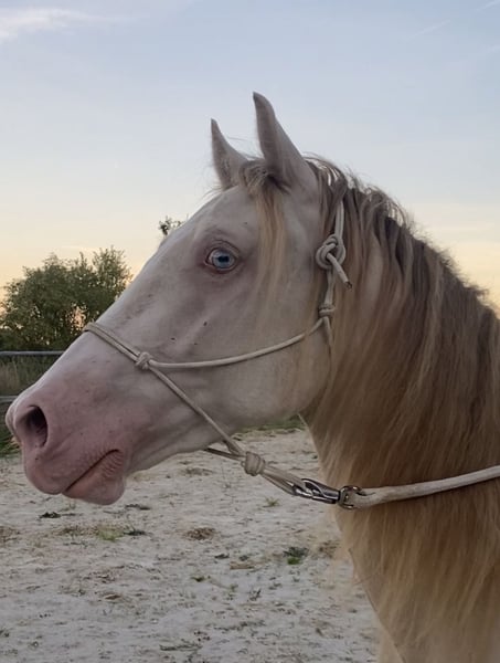 Schweren Herzens haben wir uns entschieden unseren Welsh Cob Legendary Whitegold, oder wie wir ihn nennen: Rocky, abzugeben. Rocky ist grade 6 Jahre alt geworden und ca. 145 cm groß. Wir haben ihn damals nach dem Absetzen vom Züchter gekauft und er ist seit dem bei uns aufgewachsen. Er durfte zunächst einfach Pferd sein und in Ruhe den Stallalltag kennenlernen. Züge, Traktoren, Hunde und Autos sind deshalb absolut kein Problem für ihn. Wir legen sehr großen Wert darauf, den Pferden genügend Zeit zum Entwickeln zu geben, weshalb wir vor ca. 3 Jahren langsam angefangen haben mit Rocky zu arbeiten. Vorher wurde aber bereits regelmäßig das Fohlen Abc geübt, weshalb er natürlich auch putzen, anbinden, Schmied usw. kennt. Er kennt Grundsätze der Bodenarbeit und des Horsemanship und auch longieren ist für ihn kein Problem. Da uns aber leider zeitlich die Kapazitäten fehlen, ausgiebig mit ihm zu arbeiten, ist Rocky noch nicht angeritten, dies ist auch der Grund warum wir nach einem neuen Zuhause für ihn suchen. In der Arbeit mit Rocky zeigt sich, dass er sehr schnell lernt und ein unfassbar feinfühliges Pferd ist. Wenn Rocky einmal etwas gelernt hat vergisst er es nicht mehr und kann es auch nach einer längeren Pause sofort wieder abrufen. Dabei will er immer gefallen und reagiert aber auch sensibel auf zu viel Druck. Wenn Rocky mal zu schnell zu viel Druck bekommen hat oder ungerecht behandelt wurde, merkt er sich auch das. Er zeigt drei wunderbare Grundgangarten und sehr viel Potential, er möchte gerne arbeiten und lernen und das wollen wir ihm ermöglichen. Rocky ist in diesem Sinne ein absoluter Rohdiamant, unverbraucht mit Potential in alle Richtungen. Wir wünschen uns für Rocky deshalb eine erfahrene und ambitionierte Person, die sich ihr eigenes Traumpferd selbst ausbilden möchte und darin einen Partner und kein reines Sportgerät finden will. Wir könnten ihn uns in zahlreichen Disziplinen, als Freizeitpartner, im klassischen Reitsport aber auch im Western gut vorstellen, ihm stehen alle Türen offen :) Zusätzlich kann Rocky auch mit einer wunderbaren Abstammung begeistern : Taraco Fiasco x Atinas Dream Girl (siehe Bild). Seine Farbe ist wirklich einzigartig und ein wahrer Hingucker. Rocky steht bei uns in einem Offenstall mit geräumiger Box und viel Auslauf. Im Frühling kommen unsere Pferde auf eine Sommerkoppel und stehen dann rund um die Uhr auf Gras, deshalb ist Rocky auch dies gewöhnt. Wir würden uns für ihn deshalb auch ein Zuhause mit viel Auslauf und Freiraum wünschen. Gesundheitlich war Rocky bei uns nie auffällig. Er ist nur an einen Bestplatz abzugeben, mit Menschen die ihn lieben und fördern so wie er es verdient hat. Deshalb geht für uns Platz vor Preis! Telefon: 0170 4717377 Bei weiteren Fragen oder Interesse gerne melden, wir freuen uns auf euch!