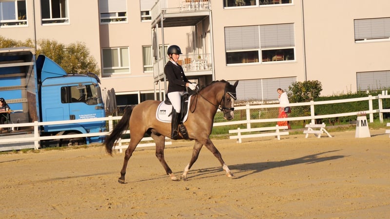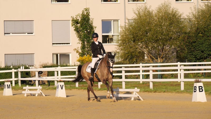 With "Daiquiri," we are offering a beautiful 7-year-old gelding at full height (1.48 m). In addition to his attractive appearance, he impresses with three good basic gaits and an absolutely lovable temperament. He is always well-behaved, uncomplicated, and reliable in handling – a true heart pony that remains calm in any situation. Children can easily groom, lead, and pamper him without any issues. "Daiquiri" has been carefully trained and has had the opportunity to mature in peace. He is currently trained and presented in dressage up to A**, with multiple placements in A*. Additionally, he shows himself to be absolutely safe and relaxed in the field. He is a true ribbon pony, always presenting himself from his best side in the arena. With his height and build, he comfortably accommodates both youth and adults. His sire is the proven stallion Danny Gold, who has produced numerous successful offspring in pony sports. With his great character, versatile abilities, and clear mind, "Daiquiri" offers the best conditions for both advanced pony sports and the ambitious leisure sector. Of course, he is uncomplicated in daily handling – from the farrier to loading. With appropriate support, a pony is developing here that will bring its new rider many beautiful successes and unforgettable moments. For more pictures and videos, please feel free to contact us.