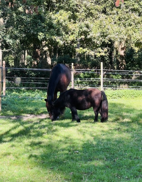 Penny (Penelope Cruz van Jeestebeck) , geboren 2015, bereitet vielen Kindern immer wieder Freude. Jedoch ist keines der Kinder dabei dass dauerhaft Interesse hat Penny zu tüddeln und zu reiten. Pennys Freunde (Wallach+Stute) sind vor einem Jahr ausgezogen sodass sie nun immer alleine auf der Wiese und nur neben den anderen Pferden steht. Da ich mir für sie wieder ein erfüllenderes Leben mit anderen Ponys oder Beistellpferden vorstellen würde, würde ich sie gerne anbieten um evtl auch wieder ein Kind zu finden das Freude an ihr hat. Penny ist ca 96cm Stockmaß, im Sommer Rappe im Winter heller, Verbandsprämienstute. Bei den Vorbesitzern hat sie ein Prämienfohlen zur Welt gebracht. Platz vor Preis! Westernsattel, Trense und Fahrgeschirr sind dabei Abstammung : PRH Rhenania Paganini x PRH Champlers Rosestar