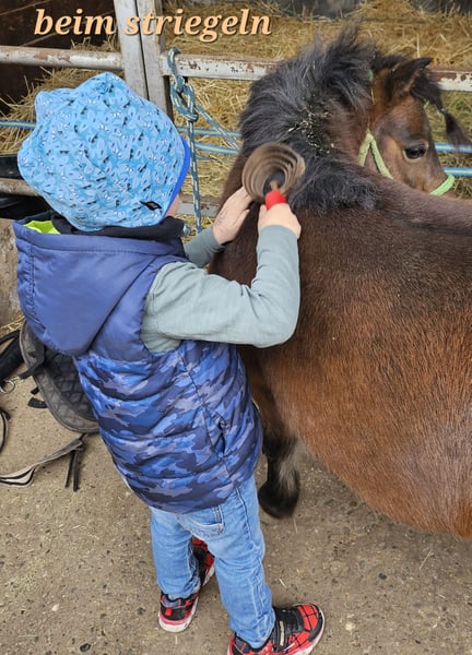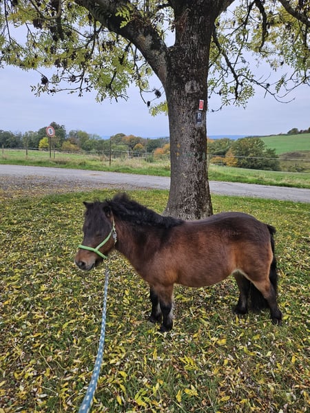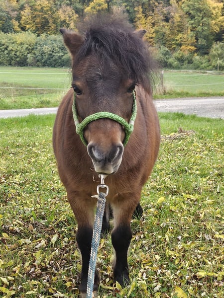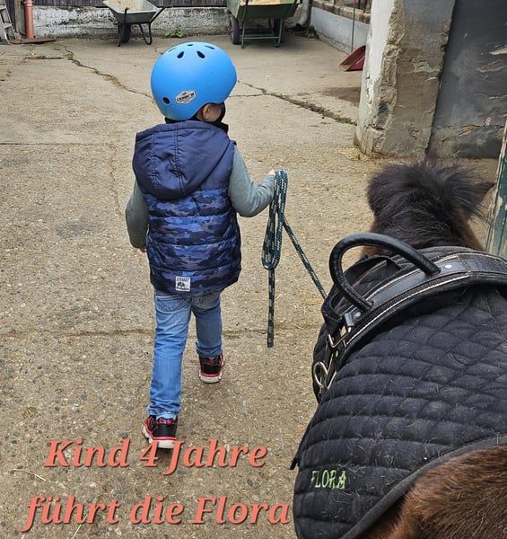 Flora wurde von mir in vielen Bereichen ausgebildet.Ich habe sie 7 Jahre,1 spännig am Gig gefahren,ohne Scheuklappen.Macht sie sehr gerne und ist ein zuverlässiger Partner und steht beim anspannen brav und hört auf die Komandos.Durch ihre gutmütigkeit und geduldigkeit ist sie auch als Kinderpony geeignet.Kinder können sie alleine führen,anbinden,putzen und die Hufen auskratzen und satteln. Sie hilft den kleinen,indem sie selbstständig den Huf hebt und ist auch bei hektischen Bewegungen unerschrocken und umgänglich.Arbeitet fleissig immer mit und achtet auf ihre Reiter/in ( Gewicht ca. 20kg )Rutscht das Kind auf dem Rücken,wird sie langsam und bleibt stehn. Longearbeiten mit Kindern oder ohne kein Problem.Leckerlis nimmt sie vorsichtig aus der Handfläche,auch spielerische Dinge wie zb Ball zu werfen oder über Hinternisse alles harmonisch.Flora ist ein gutes,ausgegliches Shetty und kommt gut mit dem Menschen und ihren Artgenossen zurecht. Steht in einer Offenstallhaltung mit täglichem Weidegang,Klein-und Grossherde,zaunsicher mit und ohne Strom,regelmässig Zahnkontrolle,Hufen alle 6 Wochen,Tetanusimpfung,entwurmt. Ich wünsche mir für sie ein zu hause,wo sie regelmässig gearbeitet wird,da sie gerne was tut und kein Stehpony ist.Nur in erfahrende Händen,nicht an Leute die ein Shetty suchen zur belustigung für das Kind und dann wenn das Kind zu gross wird, das Shetty verkaufen.Möchte ich nicht!!! Suche einen Endplatz. Könnte sie mir gut im Schulbetrieb oder in Reittherapien mit Kindern vorstellen.Auch für Kutschfahrer wäre sie intressant. Leider hat Flora seid 2 Jahren,ein Ekzem wo Mähne und Schweifrübe betroffen sind.Ich Decke sie von Mai bis Ende Oktober ein und entgifte sie regelmässig.Es ist besser geworden.Momentan wird sie von meinem 4 jährigen Sohn geritten und ich bilde sie in der Langzügelarbeit aus. Aus privaten Gründen muss ich mit dem Pferdesport aufhören und würde mich freuen das ich für Flora ein passendes zu hause finden würde,wo sie auch als Familienpony geachtet und geliebt wird. BITTE KEINE HÄNDLER!!! Bei Intresse gerne melden,ab 17.00uhr erreichbar.