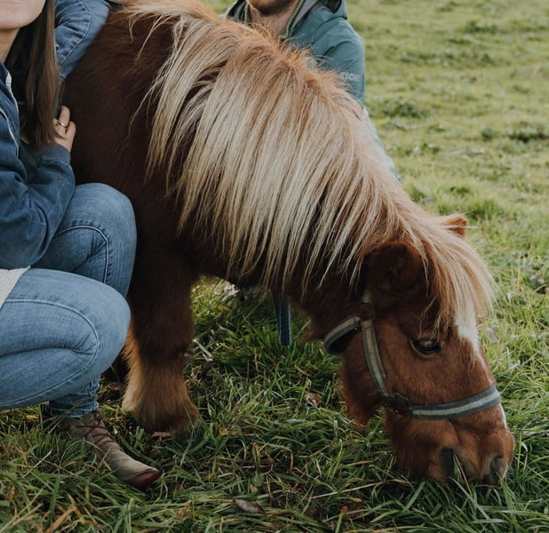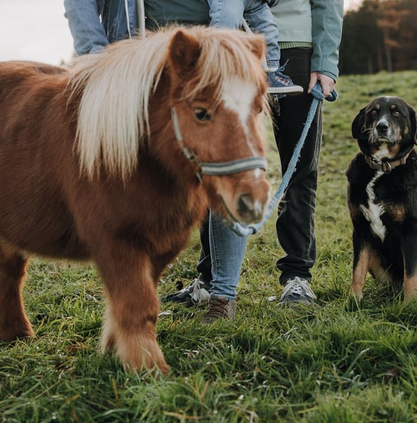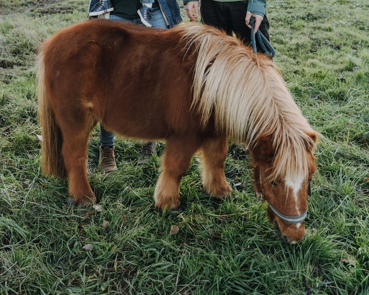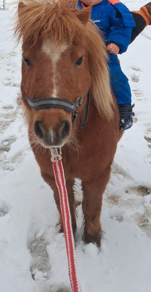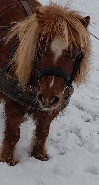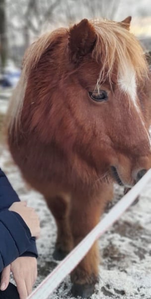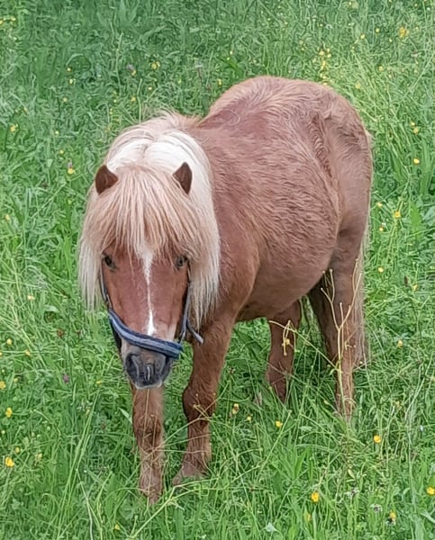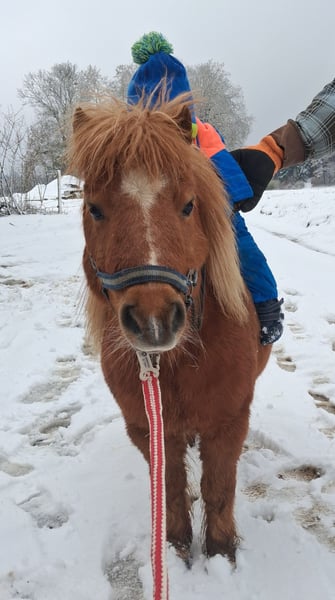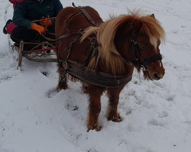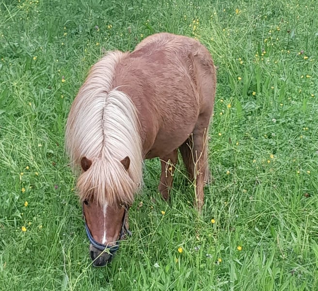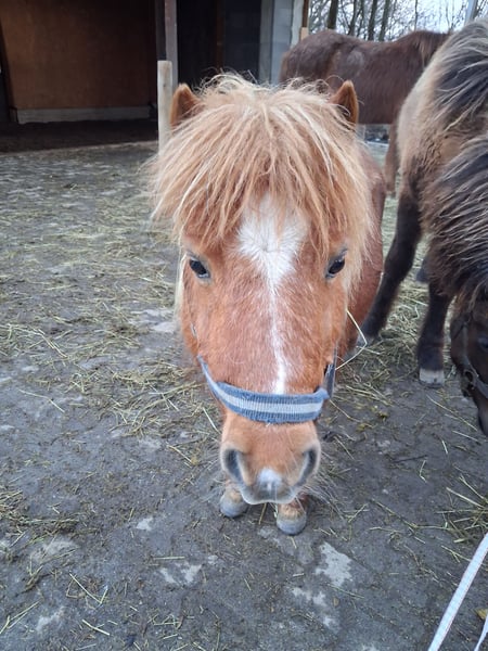 Ida kam März 2023 zu uns, nachdem ihr langjähriger Freund und Beistellpony verstorben war. Die Familie bat uns, Ida aufzunehmen, damit sie wieder in Pferdegesellschaft leben kann. Geboren in den Niederlanden, trägt sie den offiziellen Namen ETTIE V. 'T KAMPJE und besitzt einen niederländischen Pass. Sie ist bereits an Sattel und Kindergewicht gewöhnt, kennt die Grundkommandos wie Links, Rechts, Anhalten und Losreiten. Eine vollständige Ausbildung hat sie noch nicht erhalten, daher wird sie als angeritten beschrieben. Bei uns hat sie erste Erfahrungen mit dem Fahren gesammelt: Sie lief einmal einspännig mit Führhilfe an der Kutsche und hat Langzügeltraining auf dem Reitplatz erhalten. Bei ausreichend Schnee zieht sie gerne den Schlitten – ihre Fahrausbildung befindet sich im Anfangsstadium. Sie geht auch gerne mit auf Spaziergänge. Ida ist sozialverträglich und spielt gerne mit unserem Islandfohlen. Trotz ihrer kleinen Größe unter Islandpferden behauptet sie sich in der Herde gut und nimmt nicht die unterste Rangposition ein. Sie steht bei uns im Ofenstall mit direktem Zugang zur Weide. 2023 (bald darauf, als sie bei uns eingezogen war) hatte Ida leider eine Hufrehe, vermutlich eine Folge ungünstiger Futterbedingungen. Seitdem achten wir bewusster auf ihre Fütterung und ein weiterer Ausbruch blieb glücklicherweise aus. Da sich meine Zeit für Ida reduziert, suche ich nun ein liebevolles neues Zuhause, das ihr Bewegung ermöglicht und auf ihre Futterbedingungen achtet, damit sie gesund und glücklich bleibt. (Obwohl wir viele Mücken haben und ich Ida ohne Decke draußen habe, zeigt sie bei uns KEINERLEI Anzeichen von Sommerekzem und hatte sie auch bei der Familie vorher nie Probleme diesbezüglich. Sie macht einen gesunden Eindruck, hat schönes Fell und die Äppel sind wie sie sein sollen) Ida ist ein authentisches, lebhaftes Pony mit viel Charakter. Sie liebt Gesellschaft und kommuniziert klar, wenn ihr etwas nicht passt – sei es durch Stehenbleiben, Kopfschütteln oder den Wunsch umzudrehen. Wie bei allen Shettys ist sie daher nur unter Begleitung von ponykundigen Erwachsenen oder ponyerfahrenen selbstbewussten Jugendlichen, die klar mit ihr sind und weiter an der Erziehung feilen, zu empfehlen und sollte nicht mit einem "kleinen Kuscheltier" verwechselt werden. Unsere Hunde sind ihr vertraut. An ihrer Weide führt die Landstraße entlang, sie ist somit LKWs, Motorräder und jeglichen Verkehr gewöhnt. Außerdem kennt sie von unserem Hof, Traktoren, Bagger, Rinder, Kaminrauch, Lagerfeuer, Kinderrufe etc. Gerne beantworte ich Fragen, einfach melden!