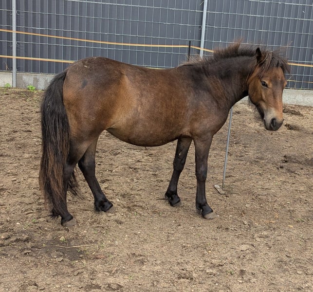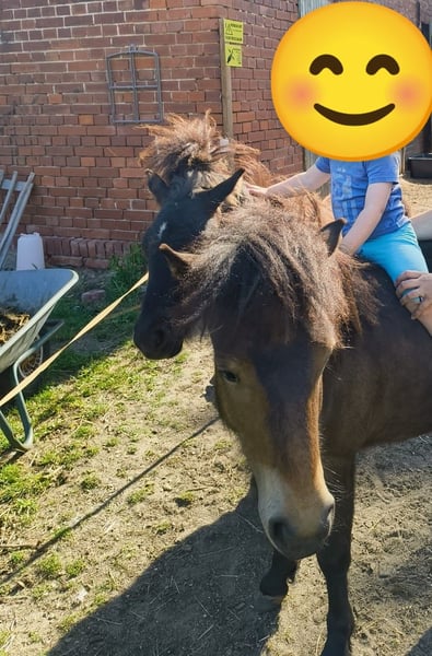 Junge Stute auf der Suche nach einem neuen Möhrchengeber. Dolly ist 1,5 Jahre alt, gesund und auf der Suche nach einem neuen 5* Zuhause. Am liebsten wäre es mir wenn sie mit ihrer Schwester zusammen auszieht. Eine Einzelabgabe ist aber möglich. *Dolly* Sie ist braun und meine treudoofe Süße. Dolly ist neugierig, aufgeschlossen, verschmust und für Leckerlies vergisst sie sogar ihre ponytypische Sturheit. Dolly ist ein wahrer Schatz mit der man durch Dick und Dünn gehen kann. Sie ist bereits ihrem Alter entsprechend sehr gelassen wenn Kinder um sie herum turnen, sie macht alles mit und möchte gefallen. Sie kuschelt super gerne und genießt jede Putzeinheit. Ich sehe sie in der Zukunft als verlässliches Reitpony. Sie ist regelmäßig beim Schmied, entwurmt, kein Extremer, keine Rehe. Dolly lebt bei uns am Haus und kennt Hund, Katze, Enten, Alltagslärm (Rasenmäher , Bohrmaschine, usw.) und Kinder. Sie war mit uns schon oft spazieren. Das macht sie wirklich sehr gut. Sie folgt gut und ist immer gut händelbar. Sie wurde altersentsprechend spielerisch "gearbeitet" und kennt longieren, Decke auf dem Rücken (auch mit Gurt), Putzen, angebunden sein, Gewicht (lediglich Kuscheln von oben für eine Minute, bisher vielleicht 5 Mal). Equidenpass vorhanden.