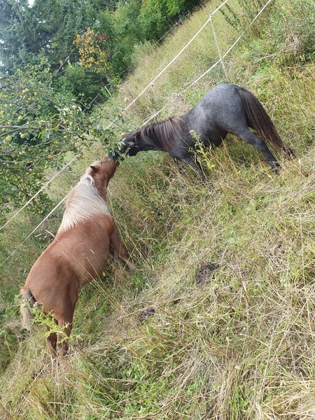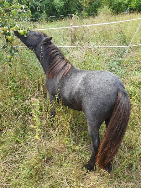 Es fällt mir nicht leicht diese Zeilen zu schreiben. Wir müssen uns schweren Herzens von unserer lieben Shetty Stute Puppy trennen. Sie wird im April 2 Jahre und hat zurzeit ein Stockmaß von 95cm, Endstockmaß wird 1,05m wie ihre Eltern. Puppy ist ehr vom alten Schlag sehr stabil gebaut. Die Fellfarbe ändert sich noch laut meinen Tierarzt wird sie ein Schimmel wie ihr Papa, weil sie schon jetzt ausschimmelt. Sie ist auch interessant für die Zucht da beide Eltern gekört sind und volle Papiere haben. Diese müssten vom neuen Besitzer beim Zuchtverband beantragt werden wenn mit ihr gezüchtet werden soll. Zurzeit hat sie einen normalen Equidenpass. Sie wird bei uns von zwei Mädchen regelmäßig geputzt, geführt, Hufe gekratzt. Ich hatte sie auch schon mit als Handpferd das macht sie auch super lieb und kennt Autos, Traktor, Hunde... Leider fehlt mir die Zeit sie regelmäßig zu bewegen durch Arbeit, Hausumbau und unsere anderen Pferde. Puppy wird sicher mal ein super Kinderpony wie ihre Eltern. Mutti kann vor Ort besichtigt werden. Papa ist leider im Januar verstorben und hat uns noch dieses wunderschöne Fohlen geschenkt. Puppy Mutti läuft auf Kindergeburtstagen, Schuleinführungen und als Turnierpony auf Führzügel Wettbewerben, ihr liegt es also im Blut Papa war auch trotz Hengst ein super liebes Kinderpony und lief auch sehr gern am Sulky. Puppy kennt schon Anhänger fahren und es macht ihr nichts aus. Bei uns war sie nie krank. Hufe sind top sagt mein Hufschmied und sie hat auch kein Sommerexzem. Sie hat tolle lange Mähne. Einfach ein Traumpony! Puppy steht bei uns im Offenstall in einer Stutenherde mit viel Auslauf und Platz zum toben. Wer ein absolutes Verlasspony für Kinder sucht oder eine neue Zuchtstute findet mit Puppy ein super schönes Shetlandpony. Das vorletzte Bild ist Puppy mit ihrer Mutti. Das letzte Bild war Puppy ihr Papa. Bei Interesse würden wir uns über eine kurze Beschreibung freuen wie Puppy im neuen Zuhause leben würde, da es uns sehr wichtig ist sie an ein neues Zuhause zu vermitteln, wo sie gut umsorgt und geliebt wird. Sie geht nur wenn für uns alles passt. Wir freuen uns auf eure Nachrichten ♡