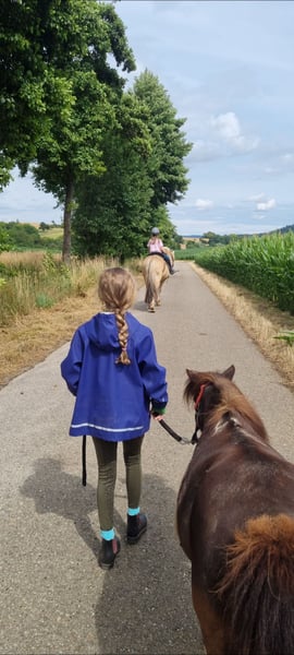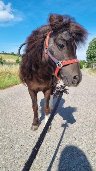 Liebevolle Shetlandpony-Stute Für meine zuverlässige und freundliche Shetlandpony-Stute Lolieka (Jahrgang 2004, ca. 86 cm) suche ich ein liebevolles neues Zuhause – gerne an ein Eltern-Kind-Team, eine kleine Pferdefamilie oder Menschen, die ein erfahrenes Shetty zu schätzen wissen. Gerne auch kleinere Schulbetriebe. Lolieka ist von Kindern geritten und war bei den Vorbesitzern auch einspännig gefahren (Video vorhanden). Sie lief außerdem in einer Ponyschule und kennt den geduldigen, ruhigen Umgang mit kleinen Kindern sehr gut. Sie wird ausgesprochen gerne geputzt, genießt Aufmerksamkeit und arbeitet motiviert mit. Bei mir hat sie Bodenarbeit gemacht, ist zuverlässig als Handpferd neben meinen Kleinpferden gelaufen und hat mich auch schon am Fahrrad begleitet. Ebenfalls ist sie ein Teil unserer Ponyschule und wird von Kindern geführt geritten. Außerdem war sie beim Ponyreiten auf fremdem Gelände dabei – dort zeigte sie sich absolut entspannt, geduldig und brav. Haltung & Charakter Lolieka lebt aktuell im Offenstall, ist sehr sozial und kommt mit anderen Pferden und Ponys gut zurecht. Sie ist eher ranghoch, bei mir hat sie sich unser größtes Pferde als besten Freund ausgesucht. Für sie wünsche ich mir unbedingt wieder einen Platz mit Pferde- oder Ponygesellschaft, da sie sich dort am wohlsten fühlt, am liebsten in einem Offenstall. Bei uns steht ihr und ihrer Herde eine 24h Heuraufe mit Netz zur Verfügung. Hiermit kommt sie sehr gut zurecht. Im Sommer wurde sie vorsichtig angegraßt und stand dann auch problemlos mit 24h Wiesenzugang. Gesundheit & Umgang regelmäßig geimpft und entwurmt (die Wurmpaste nimmt sie nicht gerne, lässt es sich aber machen) brav beim Hufschmied fährt problemlos Anhänger Durch ihre Erfahrung, Nervenstärke und ihren liebevollen Charakter eignet sich Lolieka hervorragend als Reitpony für Kinder oder als zuverlässige kleine Partnerin im Familienumfeld. Bei ernsthaftem Interesse bitte eine PN. Ich bitte von Anfragen wie "wann kann ich mit dem Anhänger kommen" abzusehen. Es ist ausdrücklich ein kennenlernen vorab gewünscht.