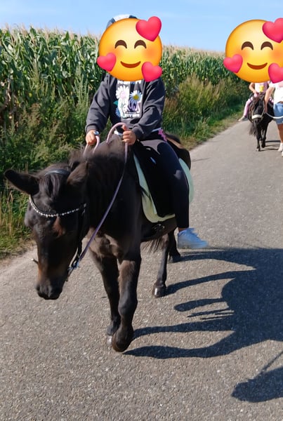 I am looking for a suitable new home for my elderly Shetty-Haflinger cross mare, Dana, who is 29 years old and approximately 1.13 meters tall, preferably near the North Sea. She is gentle and well-behaved around children and has been ridden (and theoretically driven in a carriage). Dana is an absolutely reliable horse, although she has some minor handicaps due to her previous living conditions. Three years ago, I took her over from the neighbor (a farm pony), along with some issues that needed attention. Finding support for her small needs has proven difficult, and I am unable to provide her with the perfect environment, so I am now searching for her an ideal final home. Due to her respiratory issues, a move to the north would be preferred, as I believe she would thrive much better there, even if her current care is good. I am happy to discuss her handicaps privately. She is regularly seen by the farrier every six weeks, receives osteopathic treatment regularly, and her dental care was attended to in early July. Her vaccinations are up to date. A home where she can still bring joy to a child, spend some time on pasture, and be loved would be wonderful. Currently, she is located in Molbergen, but this arrangement is not ideal (more private). Some equipment, such as a good saddle, can be included for an additional fee. If you have any questions or would like to see more pictures, please feel free to contact me.