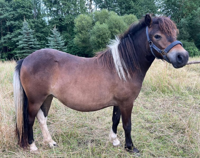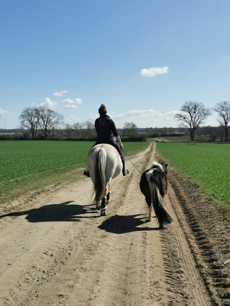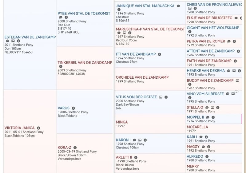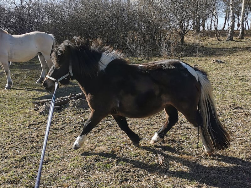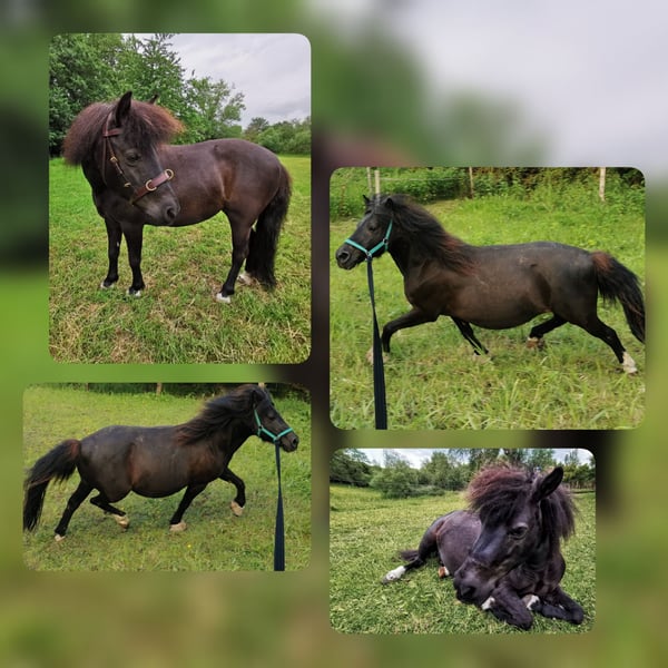 Wir verkaufen eine tolle 2 jährige Dt.Part-bred Shetlandponystute mit vollen Papieren vom Pferdezuchtverband MV. "Janikos El Katharina" wurde am 21.04.2024 bei uns auf dem Hof geboren und wird seitdem liebevoll von uns aufgezogen. Wir verkaufen sie nur aufgrund von Bestandsreduzierung, sie hat keinerlei Krankheiten. (z.B. Rehe, Ekzem, etc) Katharina präsentiert sich in der Farbe Braunschecke und hat ein aktuelles Stockmaß von 100cm, ihr voraussichtliches Endmaß wird um 105cm liegen. Als Fohlen wurde sie mit der Fohlenprämie und der Elitefohlenprämie ausgezeichnet, das Championat verließ sie als Vizechampion der Dt.Part-bred Shetlandponystutfohlen mit einer Traumendnote von 9.1. Sie erhielt 3x die Note 9.5 für den Typ! Unsere Ponys bekommen eine tolle Grundausbildung, sie geht alleine auf den Anhänger, meistert Spaziergänge alleine oder in der Gruppe, kennt putzen, waschen, anbinden, Hunde, Kinder, Trecker und vieles mehr. Sie kennt die Grundlagen vom Longieren, bekommt immer mal wieder das Geschirr aufgelegt, um sie spielerisch auf alles weitere vorzubereiten. Ebenfalls geht sie 1x die Woche als Handpferd, beim reiten oder beim Kutsche fahren mit ins Gelände. Sie zeigt sich bei allem äußerst lernwillig, intelligent und versteht sehr schnell neue Aufgaben. Unsere Ponys gehen alle 8 Wochen zum Hufschmied, das heißt es gibt keine Fehlstellungen aufgrund vom "wilden" Aufwachsen, werden regelmäßig geimpft, entwurmt und bekommen mittels Bluttest angepasstes Mineralfutter. Unsere kleine Maus kennt Boxen-, Offenstall- & Weidehaltung, steht mit mehreren Shetlandponys, Fohlen und Fjordpferden zusammen, zeigt sich dabei Rangniedrig und geht Ärger gerne aus dem Weg. Bei weiteren Informationen zu der kleinen Maus, können Sie uns gerne anschreiben, wir beißen nicht, vom merken alleine wird sie auch nicht günstiger. Transport ist gegen Kostenübernahme möglich Einfahren und/ oder Vorstellen zur Stutbuchaufnahme/ Leistungsprüfung im nächsten Jahr ebenfalls möglich. M: S1 Viktoria Janica (Bild 9) V: B.Pr/V.Pr/LH Esteban van de Zandkamp (Bild 10)