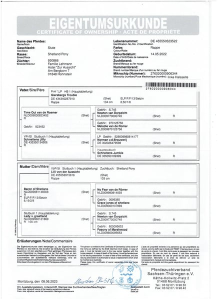 Schicke originale Shetlandponystute zu verkaufen. Sie ist "angefahren" (siehe Video). Sie stammt aus der berühmten P-Linie of Marshwood. Ihre Großmutter ist die bewährte "Lady von Graafland". Abstammend von Paeony of Marshwood. Für die Zucht sehr interessant