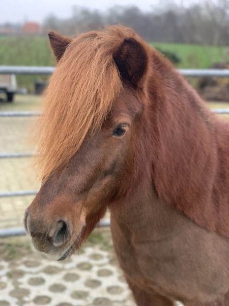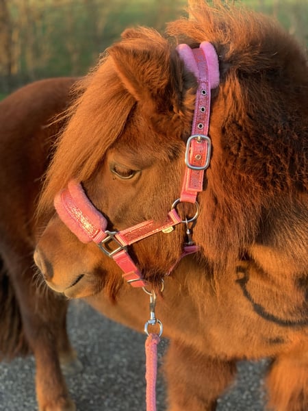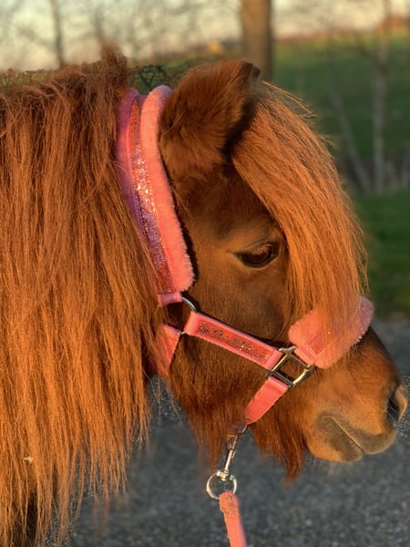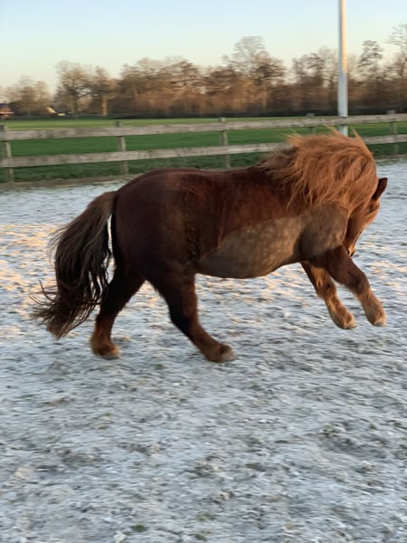 Aufgrund des fehlenden Reiters suche ich ein neues Zuhause für meine Shetland-Stute. Sie ist eine äußerst hübsche rotbraune Stute mit einer Schulterhöhe von 1,06 m und daher auch für etwas größere Kinder geeignet. Sie liebt es, draußen zu reiten, und ist auch gut verkehrsgewöhnlich. Mit den Kleinsten macht sie im Roundpen an der Longe eine gute Figur. Freilaufend im Roundpen braucht sie jedoch einen selbstbewussten Reiter, da sie, wie eine echte Shetland, manchmal ihren eigenen Kopf hat. Im Umgang ist sie äußerst brav und steht hier 24/7 in einer gemischten Herde im Offenstall. Sie ist auch für das Wagenfahren ausgebildet, muss darin aber noch etwas weitergeritten werden. Ihr Erscheinungsbild und Charakter machen sie auch für die Zucht interessant, da sie volles NSPS-Papier besitzt. Möchtest du mit dieser hübschen Dame strahlend ins neue Jahr starten?