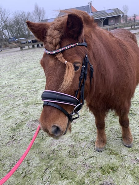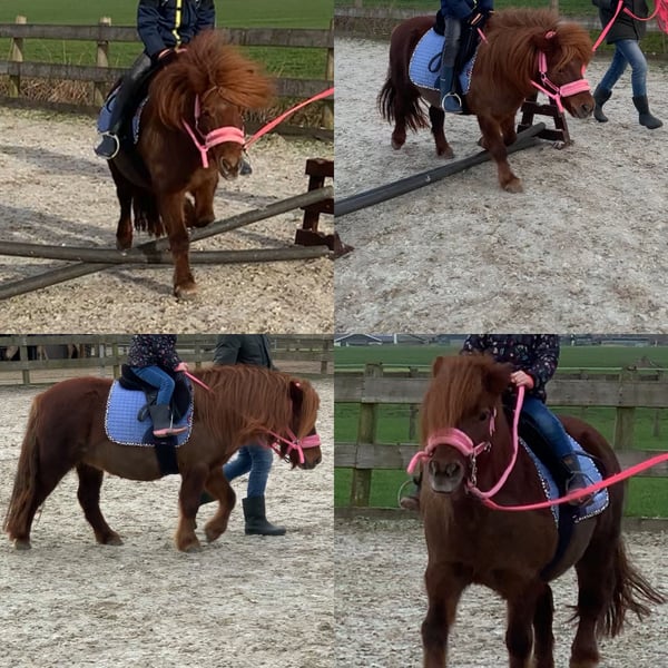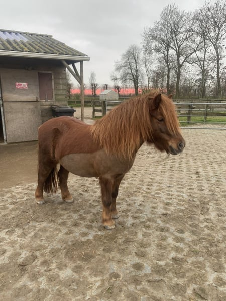 Wegens ontbreken van een ruitertje zoek ik een nieuw huisje voor mijn Shetlander merrie. Ze is een super knappe vos merrie van 1.06m hoog en daardoor geschikt ook voor de iets grotere kinderen. Ze vindt buiten rijden het leukste om te doen en is ook goed verkeersmak. Met de allerkleinste doet ze het goed in de bak aan een touwtje. Los door de bak heeft ze een doortastende ruiter nodig, want als een echte shet wil ze nog wel eens haar eigen ding doen. In de omgang super braaf, staat hier 24/7 buiten in een gemixte kudde. Ze is ook beleerd voor de wagen, maar moet daarin nog wel wat doorgereden worden. Haar looks en karakter zouden haar ook geschikt maken voor de fok, ze heeft een vol NSPS papier. Ga jij stralend het nieuwe jaar in met deze knappe dame?