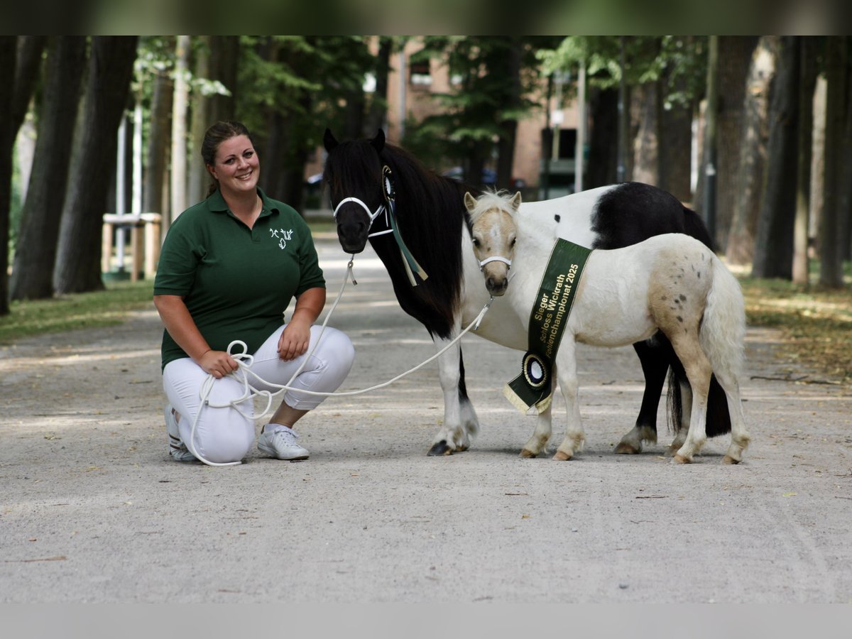 8 maja 2025 roku na świat przyszedł ten niezwykle uroczy ogierek rasy Shetland. Levano von den Kirschblüten od listopada 2025 będzie szukał kochającego nowego domu. Jego wyjątkowy kolor sierści i urocze usposobienie przyciągają spojrzenia – to prawdziwy „magnes na serca”, który podbija wszystkich na pierwszy rzut oka. Szacowana końcowa wysokość to około 90–95 cm. Levano jest zarejestrowany w Rheinisches Pferdestammbuch e. V. i posiada pełną dokumentację. Już teraz wykazuje wyjątkową jakość: - Pokaz Foal Lindlar (28.06.2025): złota premia, zwycięski źrebak i zaproszenie na Mistrzostwa Foal - Mistrzostwa Foal Wickrath: z wynikiem 101,5 punktów wybrany na najlepszego źrebaka rasy Shetland Jego pochodzenie mówi samo za siebie: - Ojciec: Halstock Lion King - Matka: Handsome v.d. Groenkamp (klacz Kroon) Levano to obiecujący ogierek – idealny zarówno do hodowli, jak i jako charyzmatyczny koń rodzinny. Przy wyjeździe jest oczywiście wielokrotnie odrobaczony, zna podstawy szkolenia młodych koni i regularnie korzystał z usług kowala. Dostawa do nowego domu w promieniu do 250 km jest możliwa na koszt właściciela. Więcej informacji i zdjęć znajdą Państwo na naszej stronie internetowej: www.minishettysvondenkirschblueten.de