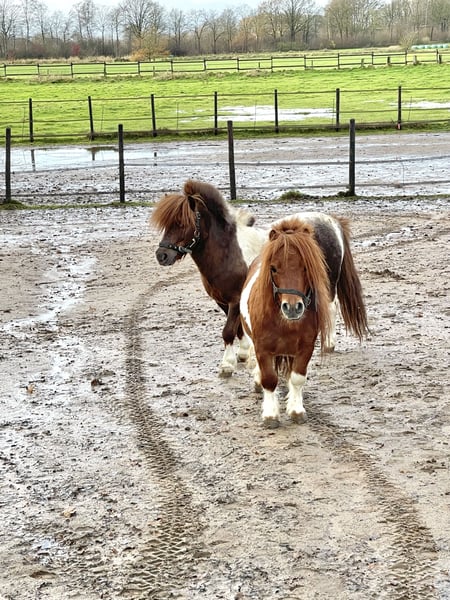 Wir geben unsere beiden Minishetty-Hengste Jerry und Tom (beide 7 Jahre alt) in liebevolle Hände ab.Sie sind von klein auf zusammen und sollten es auch bleiben.Beide stehen im Offenstall und es wäre schön,wenn dies so bleiben würde. Jerry ist eher ranghoch, was die Integration in meine bestehende Shettyherde leider erschwert hat. Vorstellbar ist, dass eine Haltung mit Großpferden für die beiden besser passt. Jerry und Tom sind häufig mit mir gejoggt,was beide immer super mitgemacht haben.Daher kennen sie die Straße,Lkw‘s und Traktoren. Dazu kennen sie Hunde und Kinder.Tom ist in dieser Hinsicht aufgeschlossener,wohingegen Jerry eher etwas launischer drauf reagiert. Mit Beiden wurde zudem viel Bodenarbeit gemacht. Sie sind hübsche, charakterstarke Hengste und bringen viel Freude mit. Wir wünschen uns für die beiden einen Platz, wo sie weiterhin gemeinsam sein dürfen und ihre Qualitäten geschätzt werden. Tom und Jerry wurden regelmäßig dem Tierarzt und Hufschmied vorgestellt. Bei Interesse gerne per WhatsApp melden 015739294316