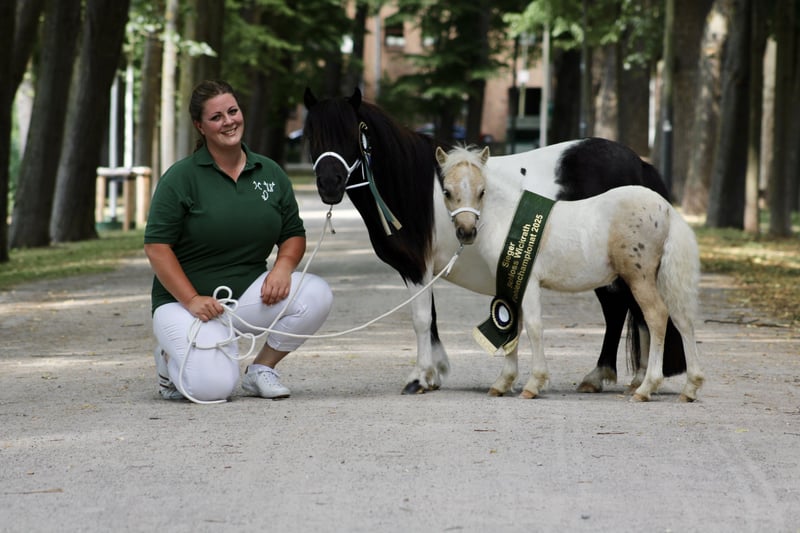 Am 08. Mai 2025 erblickte dieser außergewöhnlich hübsche Shetlandhengst das Licht der Welt. Levano von den Kirschblüten wird ab November 2025 ein liebevolles neues Zuhause suchen. Mit seiner besonderen Fellfarbe und seinem charmanten Wesen zieht er alle Blicke auf sich – ein echter Hingucker, der Herzen im Sturm erobert. Sein geschätztes Endmaß liegt bei 90–95 cm. Levano ist beim Rheinischen Pferdestammbuch e. V. eingetragen und erhält volle Papiere. Bereits jetzt zeigt er außergewöhnliche Qualität: • Fohlenschau Lindlar (28.06.2025): Goldprämie, Siegerfohlen & Einladung zum Fohlenchampionat • Fohlenchampionat Wickrath: Mit 101,5 Punkten zum Fohlenchampion der Shetlandponys gekürt Seine Abstammung spricht für sich: • Vater: Halstock Lion King • Mutter: Handsome v.d. Groenkamp (Kroon-Stute) Levano ist ein vielversprechendes Hengstfohlen – ideal sowohl für die Zucht, als auch als charismatisches Familienpony. Beim Auszug ist er selbstverständlich mehrfach entwurmt, kennt das Fohlen-ABC und war regelmäßig beim Schmied. Eine Lieferung in sein neues Zuhause ist im Umkreis von 250 km gegen Kostenübernahme gerne möglich. Weitere Informationen und Eindrücke finden Sie auf unserer Website: www.minishettysvondenkirschblueten.de