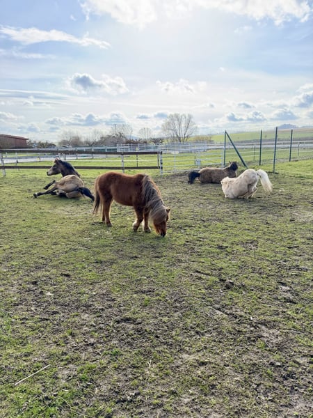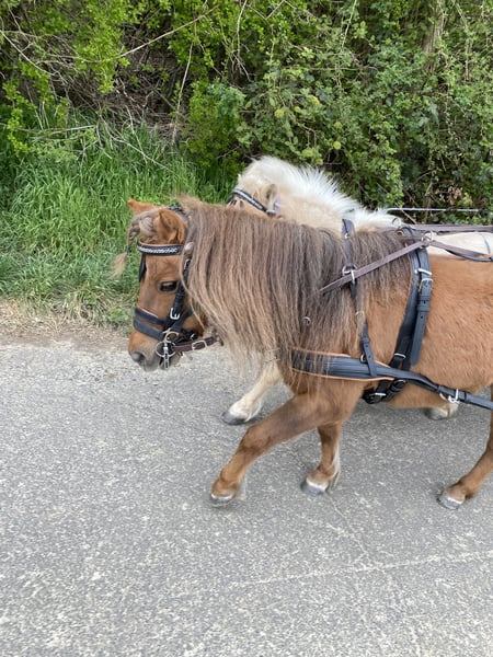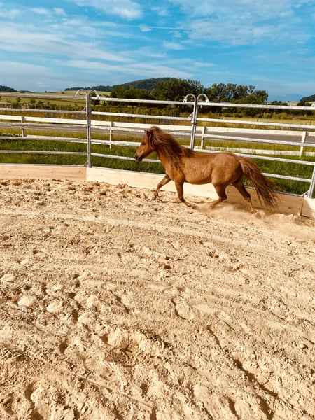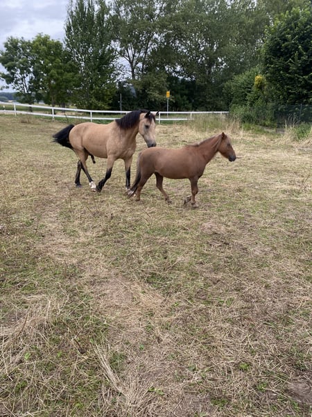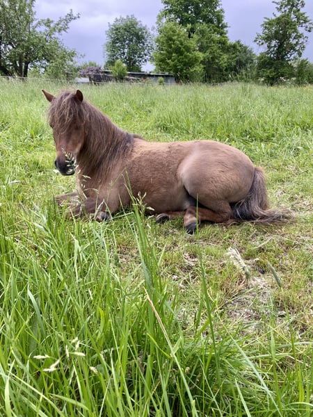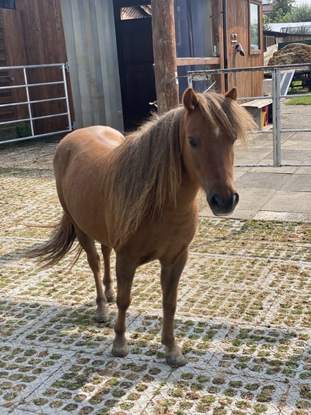 Schweren Herzens suchen wir einen entsprechenden, liebevollen Platz für unseren Teddy (sein Name im Pass lautet Lendorfs Varo) Das ist Teddy: - Dt. Partbred Shetland Pony - Wallach - 11 Jahre (06.2014) - Dunkelfuchs mit langer Mähne - Schlanke Figur, kein typisches Moppelpony (Stckm 1m und wiegt ca 180kg) KEIN Kinderpony !!! - Im Winter macht er seinem Namen alle Ehre , typisches Shetty Winterfell - Sozial, eher rangniedrig, sehr verspielt, neugierig, folgt einem auf Schritt und Tritt - Kennt anbinden, putzen, longieren (auch am Kappzaum), Arbeit im Roundpen, spazieren gehen, liebt Freiarbeit - War in 2025 zur professionellen Fahrausbildung und kennt es zweispannig gefahren zu werden, dort ist er sehr fleißig (anfangs noch eher ungeduldig) - sehr lauffreudig , viel Energie , fleißigen Schritt - Hatte im Mai 24 einen Hufreheschub, wurde geröntgt und Hufe dementsprechend angepasst durch Bearbeitung, brauchte und hat aber kein Beschlag und seitdem auch nie wieder was gehabt. - Zähne jährlich von Zahnärztin gemacht - Vollständig geimpft und entwurmt - Nur in Offenstallhaltung oder Paddocktrail abzugeben - Teddy ist es gewohnt Heu und Stroh aus Netzen zu fressen - Er verträgt stundenweise Wiese, am besten überständiges zuckerarmes Gras im Hochsommer , und kein typisches Weidelgras im Mai ! - Als Einstreu kennt er Leinenstroh, Weizenstroh , Strohpellets oder auch Späne und er liebt Knabberäste - Er kennt Verkehr, Landmaschinen (die mag er nicht so doll, aber rennt nicht weg!) und Hund, Katze, Hühner, Gänse, Lamas, Rinder usw - Teddy ist nicht professionell eingeritten, meine Tochter (3 J) saß schon ab und zu drauf ABER er ist nicht als Kinderpony geeignet, auch aufgrund seiner Energie und seines Charakters nicht. Speziell gegenüber kleinen Kindern ist er sehr respektlos ! - Er ist verschmust, liebt lange Krauleinheiten, putzen mag er sehr gern, Hufe geben geht hinten nicht einwandfrei ! - E-Zaun sicher, wenn ordentlich Strom drauf ist! - Kein Ekzemer! - Es ist kein Notverkauf, sondern ich wünsche mir für Teddy ein absolut 100% passendes „für immer Zuhause“ - Wir geben ihn nur ab weil es mit unseren Kindern nicht funktioniert ! - Bei ernsthaftem Interesse bitte ich um kurze Vorstellung per Nachricht, gerne schicke ich auch weitere Bilder und Videos und wenn alles soweit passt kann es selbstverständlich zu einem Kennenlernen kommen :-) - Platz vor Preis