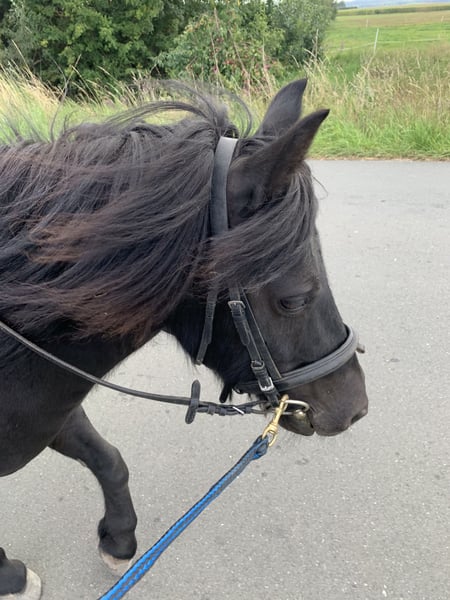 This pony has an exceptionally calm and fearless temperament, remaining reliable and composed even in new situations. Passing tractors, suddenly barking dogs, falling objects, or children running around do not faze it at all. It comes from a former riding school background and is therefore familiar with many children, various rider experience levels, and regular longe work. Lunging, riding, and ground work are part of its daily routine and are performed safely and effortlessly. It particularly enjoys mental stimulation: clicker training, small tricks, and varied tasks are enthusiastically accepted, and it learns very quickly. It especially loves walks in the forest. In handling, it is friendly, attentive, and well-suited for everyday life. Children, dogs, hustle and bustle — all of this it knows well and remains consistently relaxed. Its hooves are regularly maintained, and its teeth were last checked in autumn 2025. Registration papers with pedigree are available, and its vaccination status is up to date. Extensive accessories can be purchased together, including a saddle, bridle, lunging equipment, and other gear.