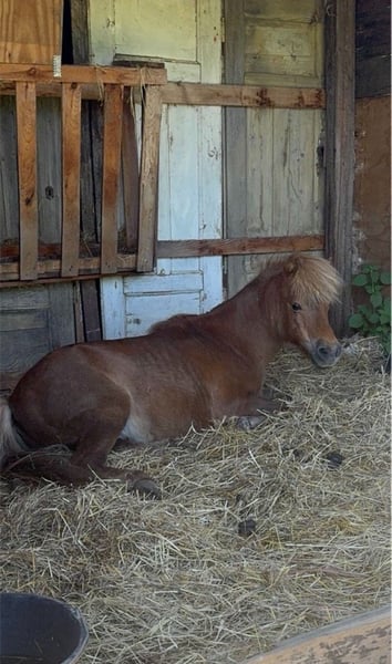 Verkaufe schweren Herzens hier mein Shetlandpony Karli mit komplettem Zubehör da ich ihm zeitlich einfach nichtmehr gerecht werde und er mir zum rumstehen viel zu schade ist. -super liebes Kinderpony -ca. 1m -Fuchs -Wallach -Rangniedrig -18 Jahre (05.03.2007) - vorbelastet auf Hufrehe Karli ist ein super liebes, neugieriges, verkuscheltes und aufgeschlossenes Pony. Er ist perfekt als Kinderpony geeignet da man mit ihm jeden Quatsch machen kann, er keine Unarten hat, mit Kindern super vorsichtig umgeht und ein totales Verlasspony ist. Im Gelände ist er unerschrocken weshalb spazieren gehen egal ob alleine oder mit anderen kein Problem ist. Er kann auch von kleinen Kinder problemlos gehändelt werde. Er ist auch mal vor der Kutsche gelaufen allerdings nicht bei uns. Da er rangniedrig ist lässt er sich von anderen Pferden vom Futter wegscheuchen und braucht deshalb einen Futterplatz bei dem er seine Ruhe hat. Er stand jetzt einige Monate rum und hat nicht viel gemacht da ich die Zeit nicht hatte. Er ist lieb beim Schmied. Er wird nur in gute Hände abgegeben da ich ihn vom Händler habe und gerne vermeiden würde das er dort wieder hinkommt. Aktuell steht er in einem Offenstall er kennt aber auch Boxenhaltung. Platz vor Preis! Bei Interesse oder weiteren Fragen gerne anschreiben.