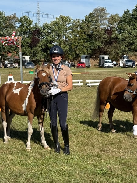 Macchiato‘s Sandro ist ein fast 3 jähriger, selbst gezogener Fuchsscheckwallach.Er kennt schon alles . Bodenarbeit, Hängerfahren, Schmied, Sattel auflegen, Trense anlegen, leichtes Gewicht auf dem Rücken, im Gelände geführt werden. Etc. Er ist gelehrig, gehfreudig, anhänglich Er wird bestimmt ein gutes Kinderpony ( allerdings nicht aufgrund seines Alters für absolute Anfänger!) er passt auch gut vor eine Kutsche. Derzeit ist er 118 groß. Er ist im Juni 2023 geboren. Er ist schon gelegt und Wallach. Lebt im Offenstall im Herdenverband. Er hatte im Sommer ein leichtes Sommerekzem.