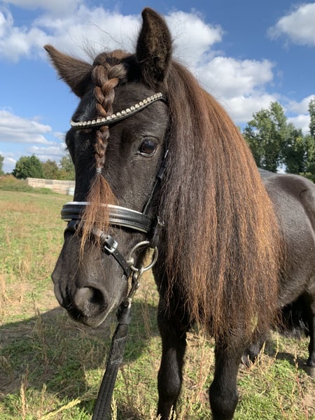 Nero ist ein ca. 8 jähriger Shettywallach mit schönen langen Beinen und hat mit seinen 1,15m eine tolle Größe. Er ist gefahren, läuft sicher mit Kindern an der Longe alle Gangarten und kann vom Boden aus sicher von Kindern gehandhabt werden. Doppellonge, Bodenarbeit und ausreiten sind in der Gruppe als auch alleine kein Problem. Nach bestem Wissen und Gewissen ist er gesund. Aufgrund von Reittourismus veranschlage ich 20€ für ein Treffen , die beim Kaufpreis verrechnet werden.