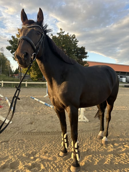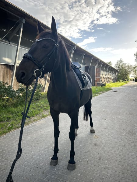 Hallo alle zusammen, Wir verkaufen unsere Traberstute Goldi. Sie ist 9 Jahre alt. Sie ist eine Seele von Pferd und wenn man sie einmal auf seiner Seite hat geht sie für einen durchs Feuer. Sie ist liebevoll und brav im Umgang und ist für jeden Quatsch zu haben, ob Bodenarbeit, ausreiten, Kleine cavalettis oder Einfach reiten in der Halle oder reitplatz. Sie wird schon geritten seit dem sie fünf ist geritten und ihr Galopp ist über die Jahre immer besser geworden das man ihr garnicht mehr anmerkt das sie ein Traber ist. Sie wurde im August 2025 am griffelbein operiert was sie aber super gemeistert hat. Momentan befindet sie sich im Aufbau Training( Sie trabt und galoppiert ). Sie hat außerdem hufrehe die sie aber ( außer das sie nicht länger als eine Stunde auf die Wiese und getreidefrei essen muss) überhaupt nicht ein. Wenn ihr ein Pferd wollt mit dem ihr alles machen könnt und Spaß haben wollt ist Goldi genau die richtige. Röntgen Bilder Vorhanden. Bei Interesse und/ oder Fragen gerne anschreiben