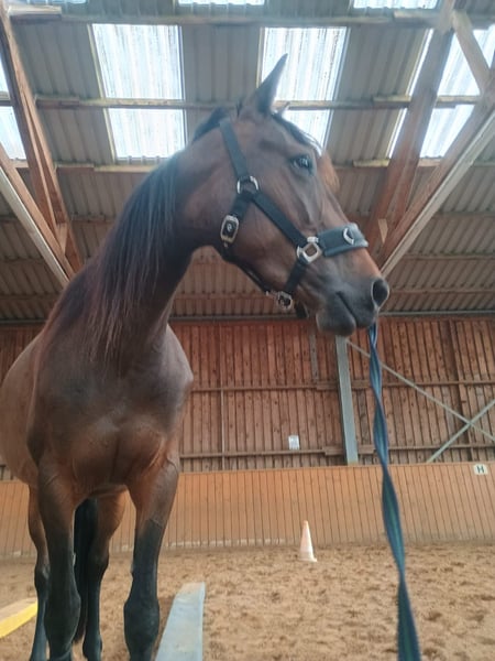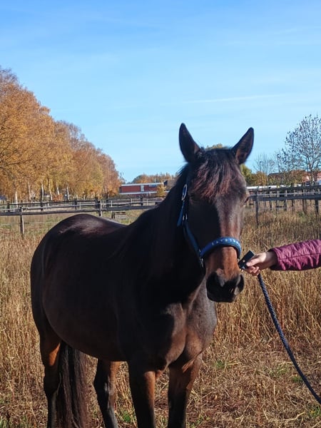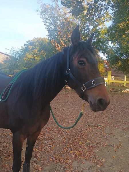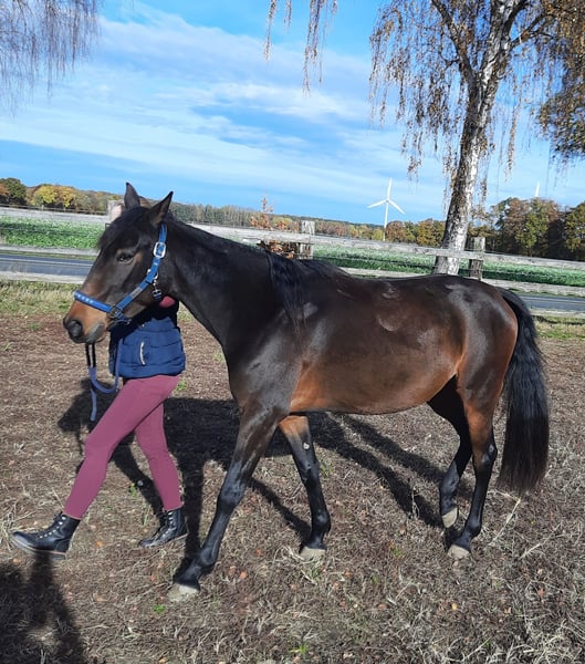 Geboren: 05/2021 Stockmaß: ca. 1,58 m Rasse: Traber Geschlecht: Stute, barhuf Menschenbezogene, charakterstarke 4-jährige Traberstute zu verkaufen. Leicht angeritten, aktuell überwiegend Bodenarbeit (Geitner, Longe, Folgearbeit) – motiviert und lernwillig. Kennt Spaziergänge allein und in der Gruppe. Gute Grundgangarten, Galopp problemlos, zeigt Potential am Sprung. Im Umgang brav, reagiert fein auf Stimme, unkompliziert bei Hufbearbeitung und Gelassenheitstraining. Kein Anfängerpferd – braucht eine feste Bezugsperson und kompetente Führung. Haltung aktuell: nachts Box, tagsüber Paddock, im Sommer gerne Weidegang. Gesund, AKU (04/2025) ohne Befund. Videos bei ernsthaftem Interesse. Platz vor Preis, Zubehör vorhanden. Nur in beste Hände.