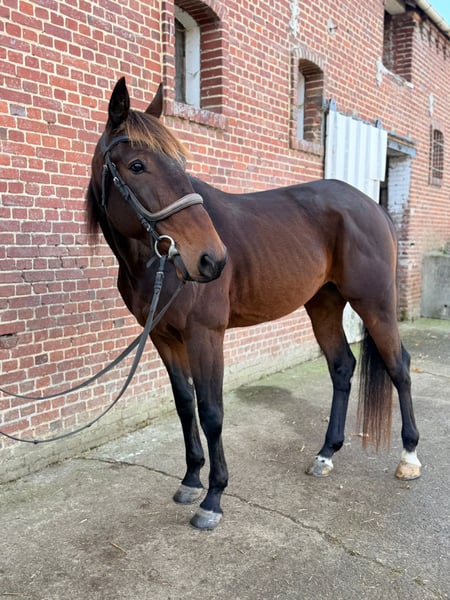 French Trotter PP – 5 years old – 16.1 hh – Trained in all three gaits Beautiful 5-year-old French Trotter with full papers, dark bay, measuring 16.1 hands. Excellent conformation, with bone and frame. Well-mannered, respectful, and pleasant to handle. Ridden in all three gaits, honest, comfortable, and attentive. Rides out alone or in company without any issues. Healthy horse, mentally balanced, easy to live with on a daily basis. Adapts well to both box and pasture life. Ideal for leisure riding, hacking, dressage, or show jumping. A horse with potential and a sought-after build. Contact by phone or WhatsApp for photos and videos. Serious inquiries only.