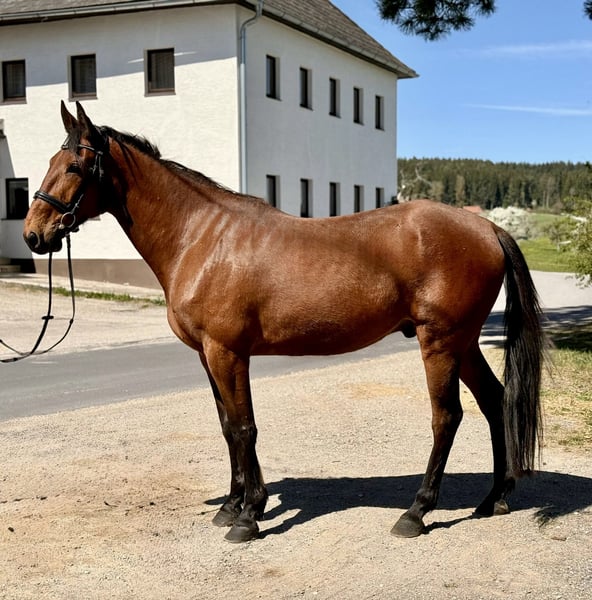 Juwel is een lieve achtjarige Franse ruin van 1,70 m. Zijn naam zegt het al, en zo is ook zijn karakter – een echt juweel! In de omgang is de ruin zeer makkelijk en braaf. Dit geldt ook voor het rijden. Maar Juwel brengt niet alleen zijn rijervaring mee onder het zadel. Hij is ook al eens in de koets gereden: Op dit paard kun je altijd rekenen. Of het nu op de rijbaan of in het terrein is, Juwel weet wat hij moet doen. De ruin is niet beslagen en loopt barefoot. Meer informatie graag via WhatsApp of telefonisch op: 00436603632373 Locatie: Pelmberg 15 / OÖ Bezichtiging en proefritten zijn graag mogelijk na afspraak! Wij regelen ook graag het transport van het paard!
