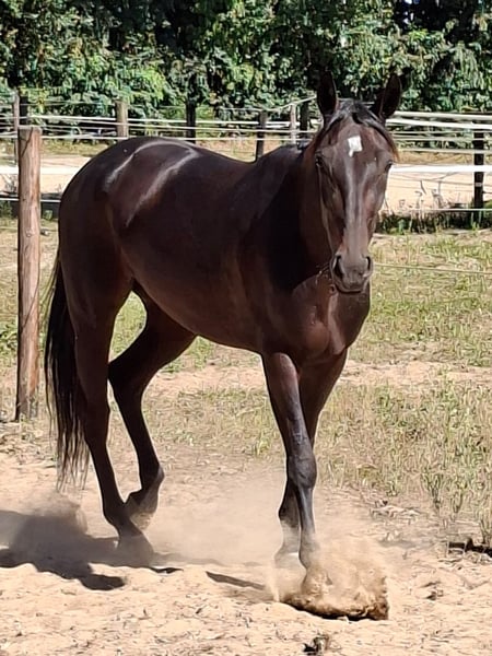 Te koop: Duitse Traber-merrie – ideaal voor ambitieuze ruiters! Deze elegante donkerbruine merrie is geboren in 2021 en valt op door haar stevige bouw en vriendelijke aard. Met een stokmaat van 1,53 m is ze perfect voor gebruik in de drafsport en geschikt voor zowel recreatief als sportief rijden. Als pure Duitse Traber beschikt ze over een uitstekende afstamming en veelbelovend potentieel. Ze is gezond, goed getraind en toont een prettige bereidwilligheid. De merrie is gevaccineerd, regelmatig ontwormd en liefdevol verzorgd. Bij interesse of voor meer informatie sta ik graag voor u klaar. Bezichtiging en proefritten zijn in overleg mogelijk.