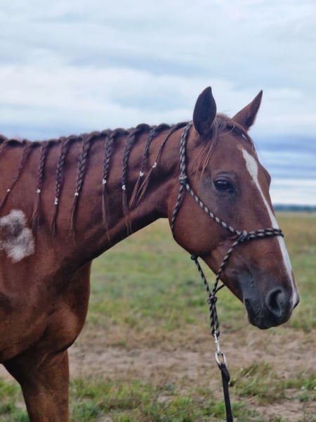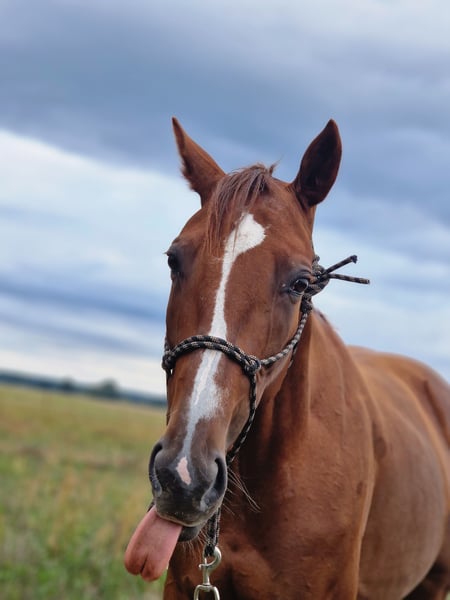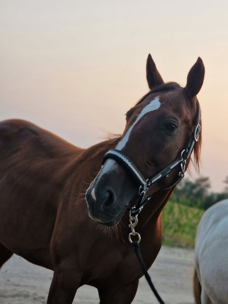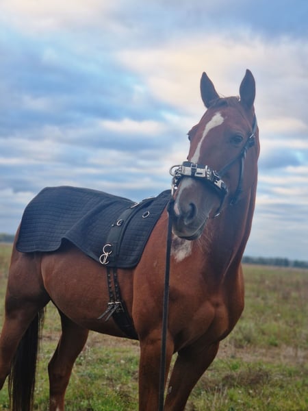 Hallo, suche für meine schöne Traber Stute Hope ein neues Zuhause. Sie ist 8 Jahre alt, 164cm groß und hat einen Charakter aus Gold. Sie ist ranghoch was auch leider der Grund für die Abgabe ist. Da sie mit meiner ersten Stute (halbseitig blind) zu zweit im Paddock steht. Bei der Arbeit braucht sie eine liebevolle, konsequente Hand, zeigt sich aber auch sehr lernbereit, aufgeschlossen und konzentriert. Sie wird aktuell geritten und durch regelmäßige Bodenarbeit und longieren gefördert. Zuletzt hat sie die Freiarbeit kennengelernt (noch nicht so gefestigt). Ich gebe sie als Freizeit- / Familienpferd ab, da sie auch sehr menschenbezogen und verkuschelt ist. Sie ist schmiede-, verladefromm und zeigt sich beim Tierarzt auch brav. Sie ist kerngesund, hat die erste Impfung schon und ist entwurmt. Folgendes Zubehör ist schon im Preis enthalten: - 2x Halfter - 1x Halfter- Kappzaum - 1x Fesselkopfgamaschen - 1x Hufglocken - 1x Regendecke - 1x Outdor-Decke 50g - 1x Fliegendecke - 1x Fliegenmaske - 1x Fliegenhaube Probereiten ist möglich jedoch mit einem Reitpad. Ich bitte nur um ernsthafte Anfragen.