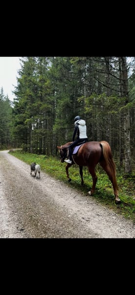 Unsere 9-jährige Traber-Stute Makamae ist ein ganz besonderes Pferd, das nun ein neues, liebevolles Zuhause sucht. Makamae ist eine treue Seele, die im Gelände absolut zuverlässig ist. Ob alleine oder in der Gruppe - sie geht sicher und gelassen ihren Weg. Auf dem Platz ist sie eher gemütlich unterwegs, kennt aber alle drei Grundgangarten und macht brav mit. Besonders bezaubernd ist ihr sanftes und liebevolles Wesen. Sie liebt Kinder, lässt sich geduldig putzen, streicheln und genießt jede Aufmerksamkeit. Mit ihrem ruhigen Charakter ist sie die perfekte Begleiterin für entspannte Ausritte, gemütliche Spaziergänge oder auch für Familien, die ein liebes Freizeitpferd suchen. • Ihre Starken: • Verlässliche Partnerin im Gelände • Kinderlieb & menschenbezogen • Kennt Schritt, Trab & Galopp • Bringt Ruhe und Gelassenheit mit Außerdem gebe ich noch einiges an Zubehör mit: Sattel, Zaumzeug, Halfter und vieles mehr. So kann Makamae direkt in ihrem neuen Zuhause ankommen. Makamae ist kein Sportpferd - sie sucht Menschen, die ihre liebevolle Art schätzen und Freude an gemeinsamen Momenten haben.
