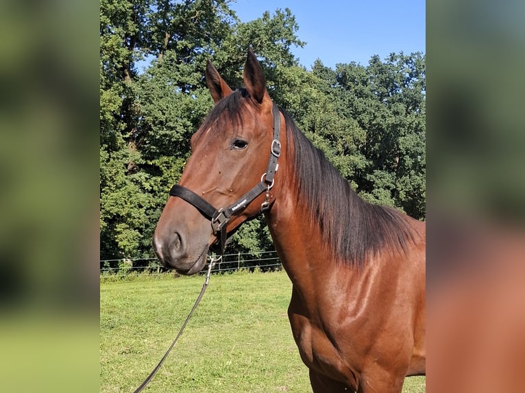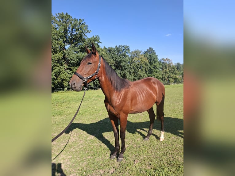 Sniper is a 1-year-old trotter stallion. This beautiful and very tall bay is only conditionally suitable for racing due to a slight misalignment in his front right leg (toe width). It would be an attempt that might fail after years, as he may not be able to maintain the action at racing speed. Nowadays, no one wants to take that risk, especially with the high costs in racing stables and the limited earning opportunities. Therefore, we are also offering him as a leisure horse, as this slight misalignment will likely never cause him problems in this area. Otherwise, Sniper is completely healthy. He was X-rayed in August and showed no findings. He is very tall and will certainly reach a height of over 165 cm when fully grown. Sniper has been with us since his birth on April 17, 2024. From birth, he has impressed with a very calm and attentive character and shows no stallion behavior. He always wants to please and is very cooperative. Sniper is familiar with leading, grooming, tying in the box, and washing his feet in the wash area or wash box. He is regularly presented to the farrier, is already wearing very light front shoes, and is fully vaccinated and dewormed. Currently, he spends the day in the paddock and has an individual box at night. In summer, the herd was also outside overnight. Sniper impresses other horses with his affectionate and cuddly nature. If you are looking to train a leisure horse yourself, you have come to the right place and can start with groundwork and other basics right away. Trotters are typically being accustomed to the cart at this stage. We hope to find for Sniper, in addition to appropriate care, a lifelong partner who enjoys training this charming horse and making him a lifelong friend. Viewings are welcome by appointment.