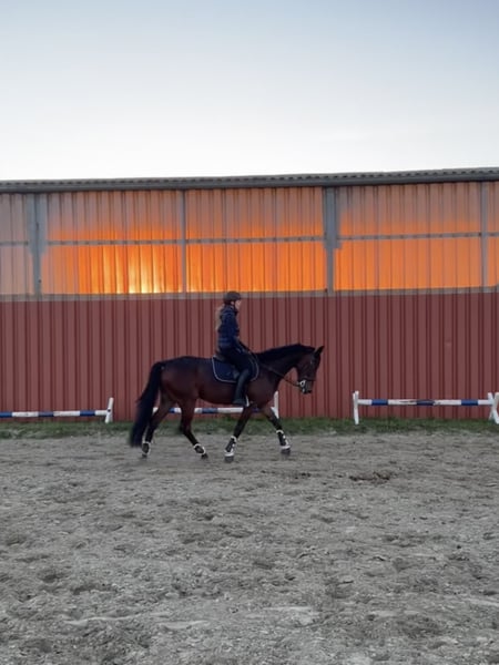 Zum Verkauf steht dieser 5 jährige Deutsche Traber geboren 16.02.2021. Barsoi „Barry“ ist 1,58m groß und eher schlank gebaut. Er ist sehr sehr lieb im Umgang und liebt Putzen und kuscheln. Er lässt sich auch problemlos von Kindern fertigmachen, führen etc. Er ist sehr stabil angeritten, aber noch kein richtiges E-Niveau. Er hat Spaß am „Springen“ (bislang bis ca 60cm). Er geht an der Longe sicher alle drei Grundgangarten und lässt sich an der Longe auch von Kindern super reiten. Unterm Reiter geht er sicher Schritt und Trab, Galopp ist vorhanden, allerdings noch eher schnellerer Natur, weil er noch unausbalanciert ist und nicht genügend Muskeln hat. Er ist beim „freien Reiten“ (ohne Longe) kein Anfängerpferd. Desweiteren ist er Geländesicher und kennt die Basics in der Bodenarbeit. Er ist ein sehr unerschrockenes Pferd (Trecker, rennende laute Kinder, Hunde usw kein Problem). Er ist auch mehrere Reiter gewohnt und kommt damit super klar. Er ist Barhufer und lieb bei TA, Schmied & co und ist Verladefromm. 4.000€ VB Bei Fragen und Interesse gerne melden!! Videos können auf Anfrage selbstverständlich über WhatsApp oÄ verschickt werden. Ein Probereiten ist nach Vereinbarung natürlich möglich.