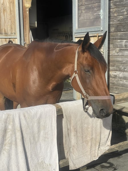 Hallo, ik ben Foxy, Ik ben een liefdevolle, aanhankelijke Traber ruin. Ik geniet er enorm van om vertroeteld en verwend te worden. In de omgang ben ik ook met kinderen erg rustig en ontspannen. Ik ga met mijn ruiter bijna alleen maar in het terrein, zowel in groep als alleen. Alleen ben ik soms nog een beetje angstig, maar ik loop overal voorbij. Ik hou ook van grondwerk en werken op de plaats. Ik kan alle drie de basisgangen. Ik wens het allerbeste thuis, waar ik zeer gewaardeerd word. Momenteel woon ik in een open stal met mijn vrienden in een gemengde kudde, maar ik ken ook boxhuisvesting. Ik ben volledig beslagen, kerngezond, gechipt en gevaccineerd. Te koop in opdracht. Voor proefrijden wordt 30€ gevraagd. Ik kijk ernaar uit jullie te ontmoeten, Jullie Foxy
