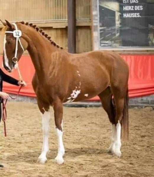 Enchanting KWPN Mare – Perfect for Leisure or Breeding! For sale is a beautiful chestnut mare, born in 2016. Standing at 16.1 hh, she combines elegance with presence. As a KWPN-approved horse and licensed by the Barockpinto Verband Ster, she impresses with her excellent pedigree. She is ideally suited as a leisure horse or for breeding purposes and is consistently friendly in her handling, though she requires an experienced rider. Whether on rides, walks, or relaxed ground work, she is attentive and engaged. Seeking a new owner with a big heart and an open stable space. If interested or for further information, please feel free to contact me. A viewing can be arranged by appointment.