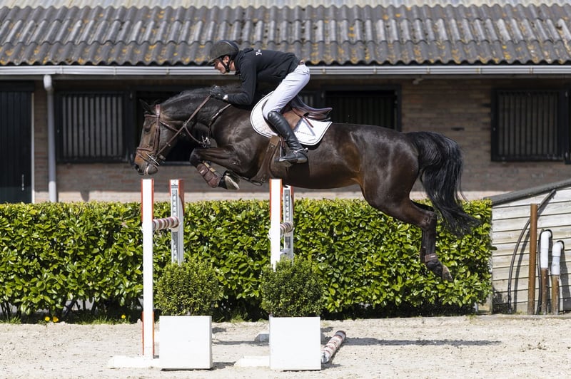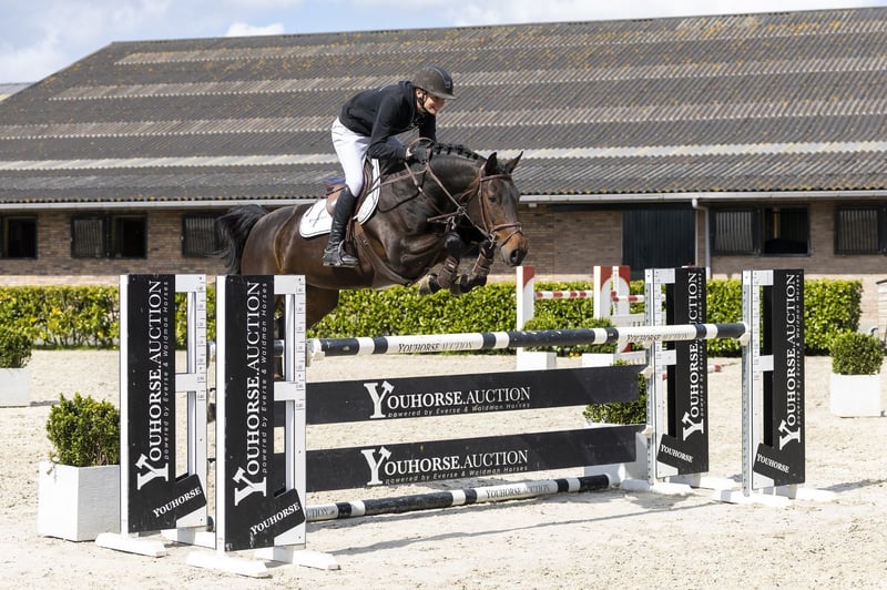 Beautiful brown mare with a luxurious appearance to fall in love with. Shows a lot of willingness and has a very good way of jumping. Sharp and athletic with a careful jump. Well-behaved in handling and a nice horse to work with. Easy to ride and suitable as an amateur horse. Currently at 1.15m level and an interesting horse for a children’s or amateur rider. Sire Douglas (1.50m) is a son of Darco (1.60m), one of the most influential showjumping stallions. Douglas has produced many international showjumpers and is known for passing on scope, attitude and jumping quality. Dam Fair Lady (Indoctro) is a mare from a proven sport line. Indoctro (1.40m) is known for passing on rideability, technique and scope. Damline The damline is strong and proven in sport with multiple horses at a high level. From the direct line: Jargon DN – 1.60m Lady Killer DN – 1.35m Further in the line: Irving VG – 1.60m Kabaya Lady – 1.45m Volendam – 1.50m Baileys VK – 1.40m Ibiza VK – 1.50m World Lady – 1.30m Valdimore – 1.60m G-Star VK – 1.35m A very strong sport line with multiple international horses up to 1.60m level, providing quality, scope and attitude.